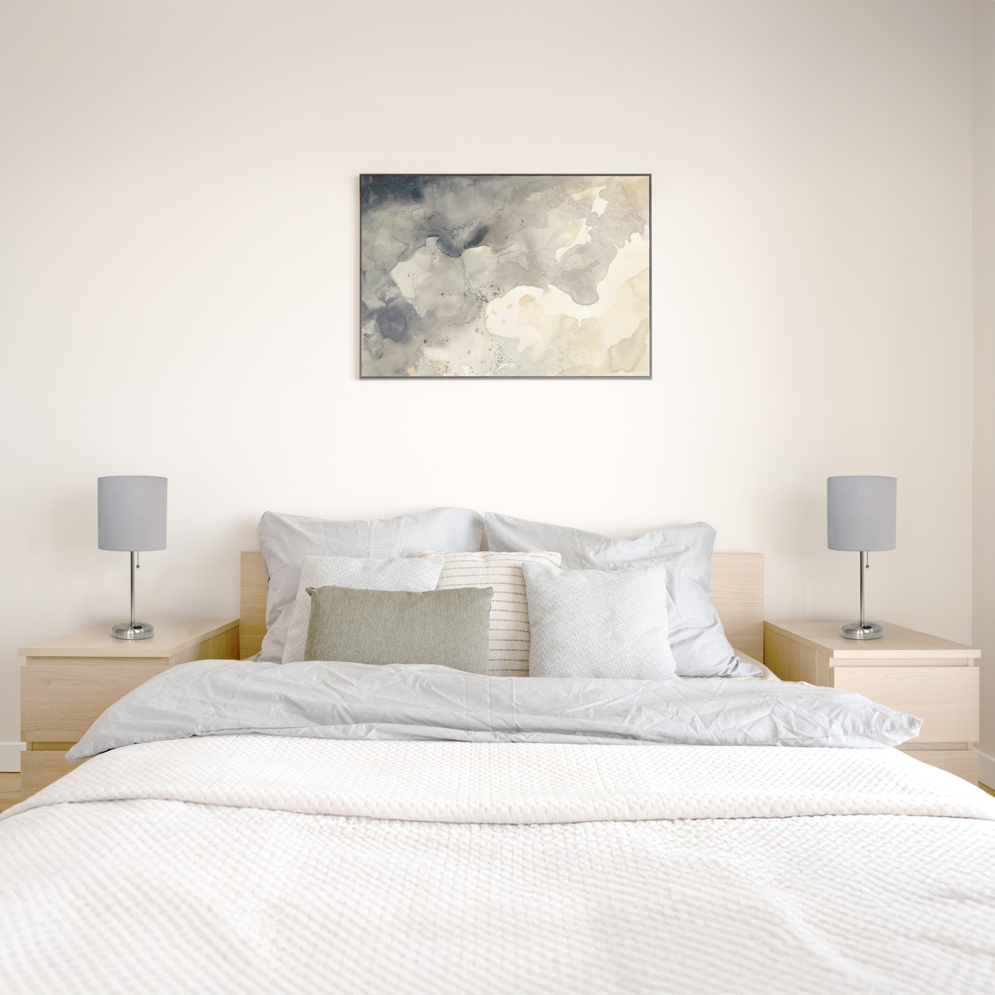 Stick Table Lamps with Drum Shade - 19.5" - Silver and Gray - Set of 2