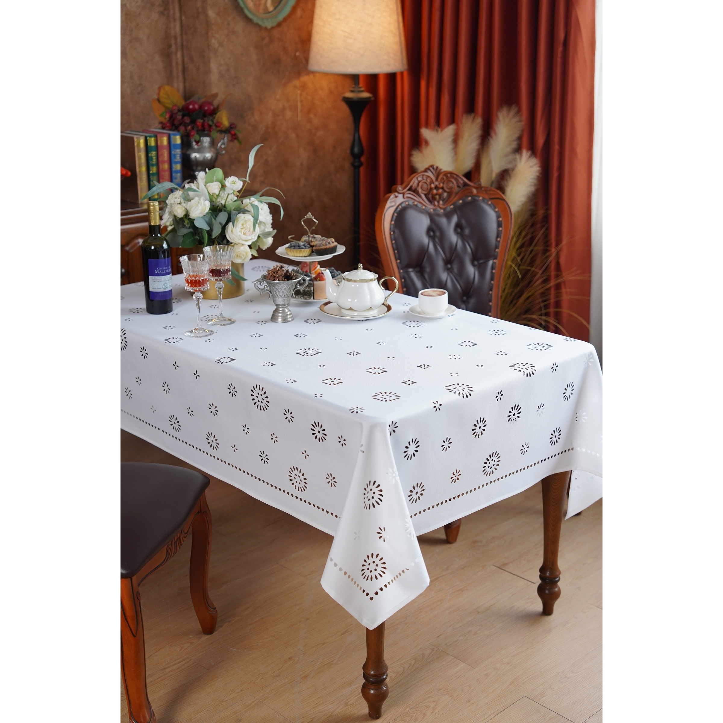 Violet Linen Daisy Eyelet Vintage Cutwork Pattern Tablecloths