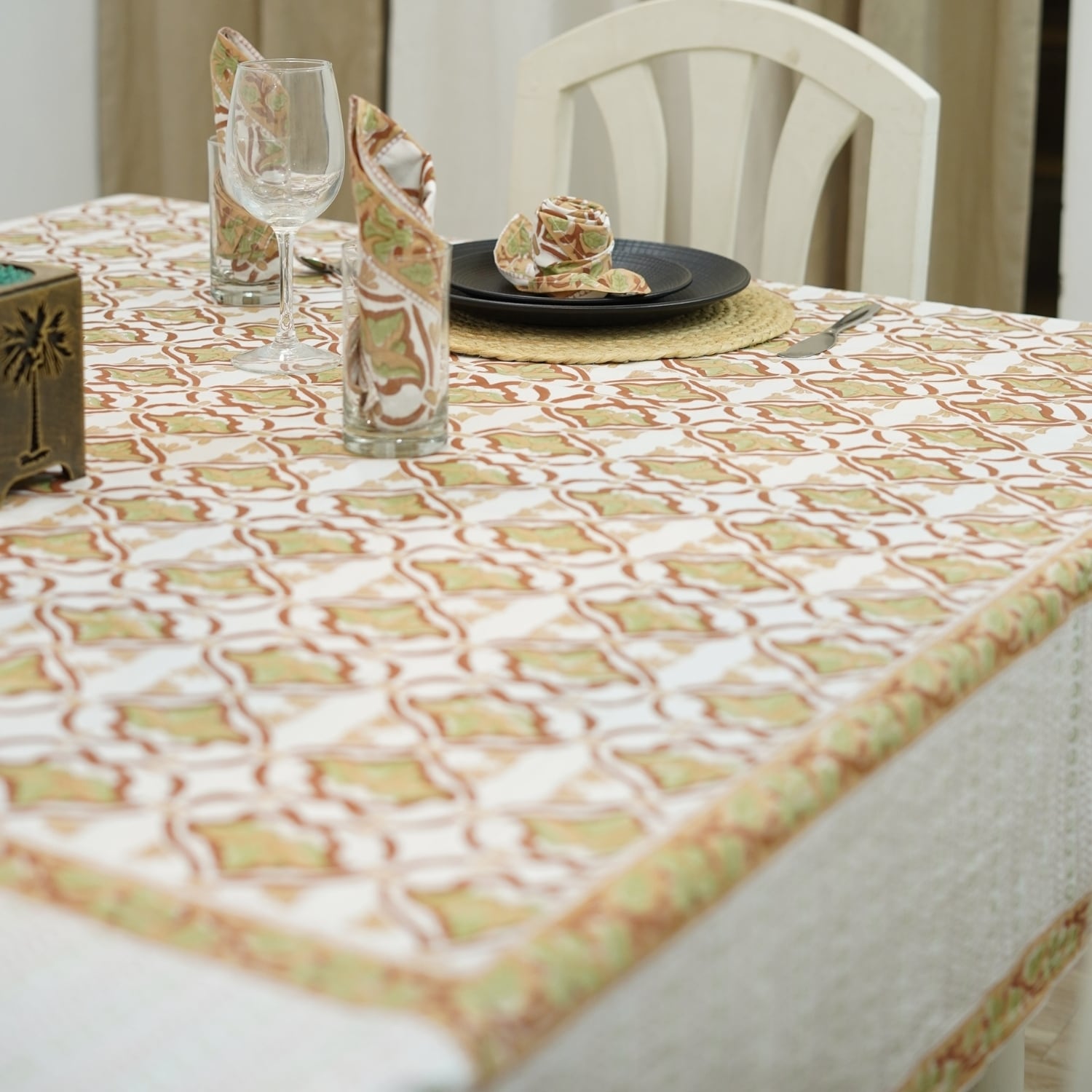 Fabdivine Handmade Block Print Cotton Table Cover Farmhouse Dining Kitchen Decor Gift