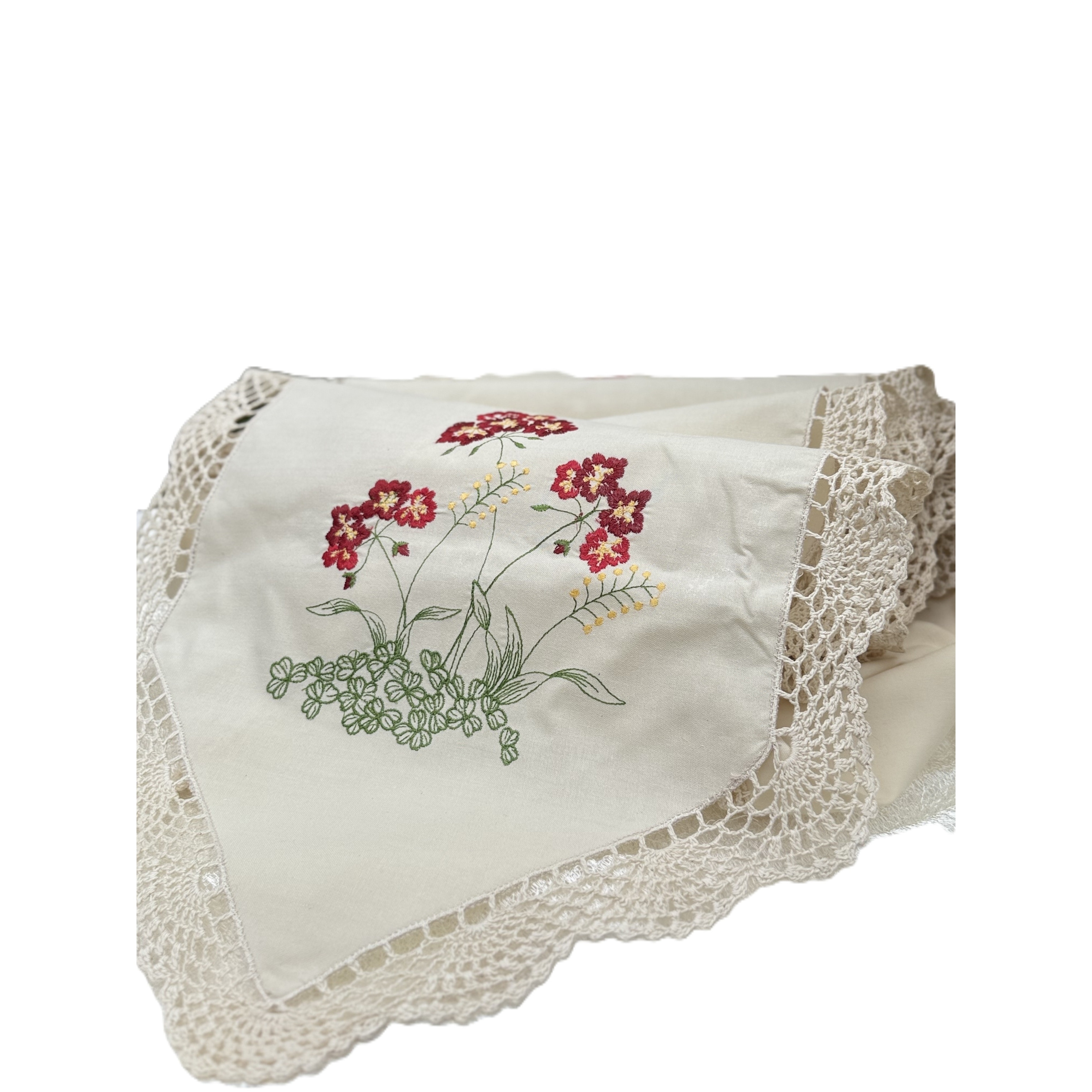 Embroidered Flowers with Beige-15X72-Table Runner-Beige