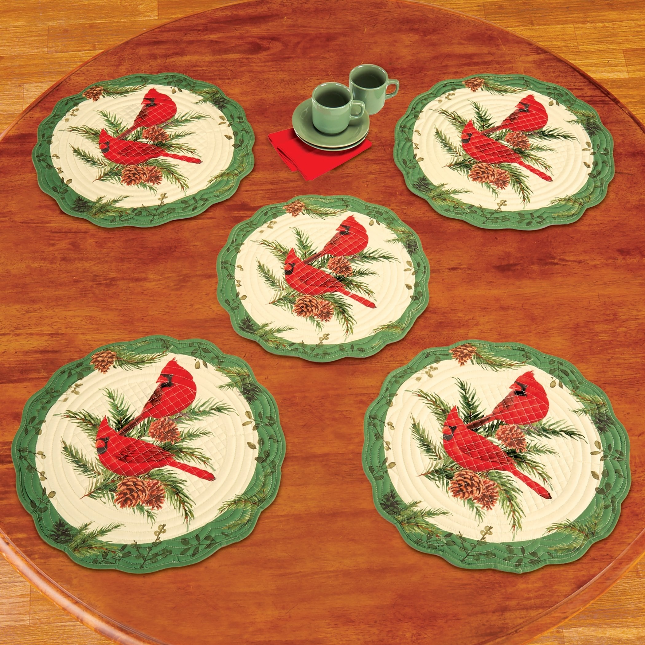 Festive Cardinal Pinecone 5-Piece Placemat Set - 9.000 x 8.250 x 2.000