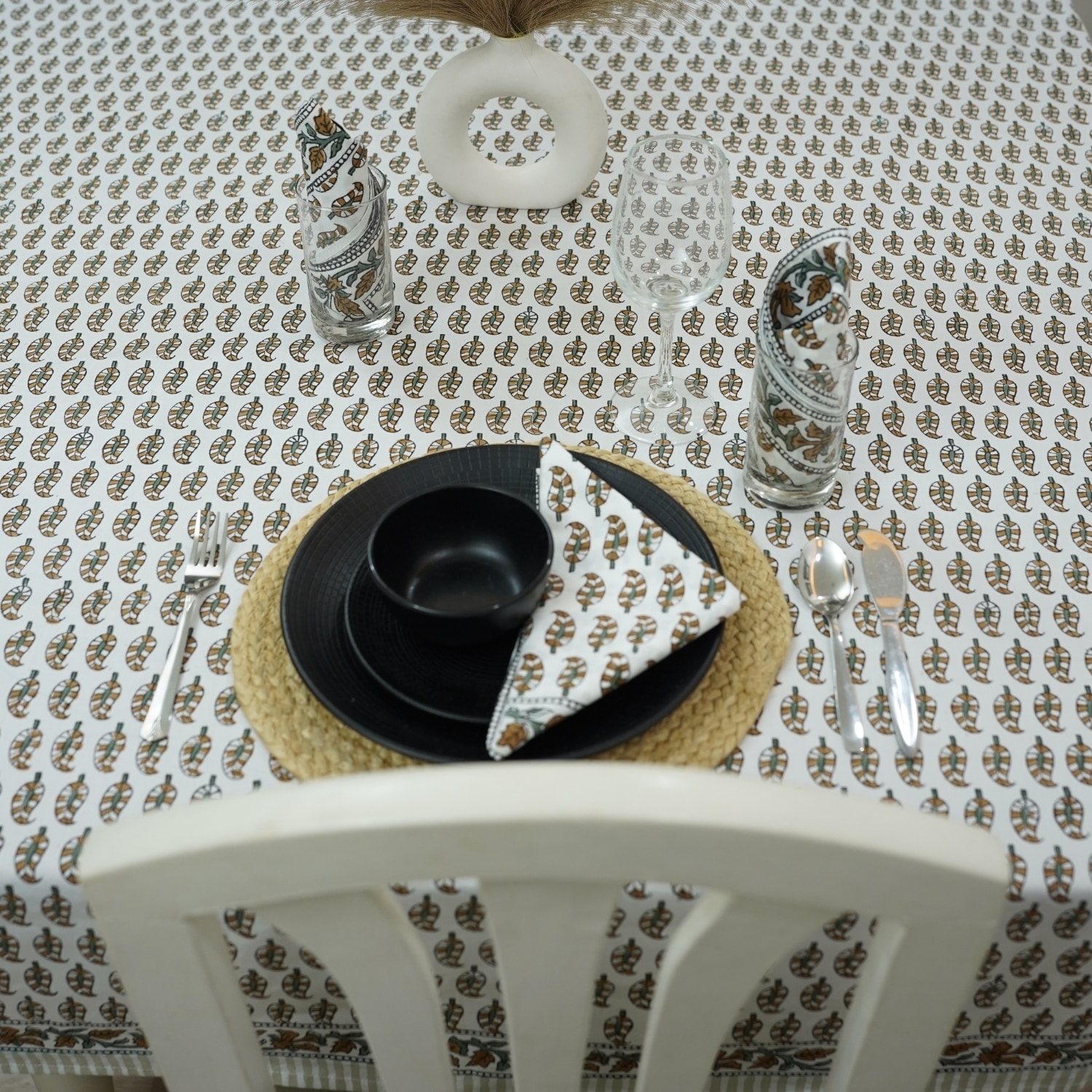 Fabdivine Handmade Block Print Cotton Table Cover Farmhouse Dining Kitchen Decor Gift