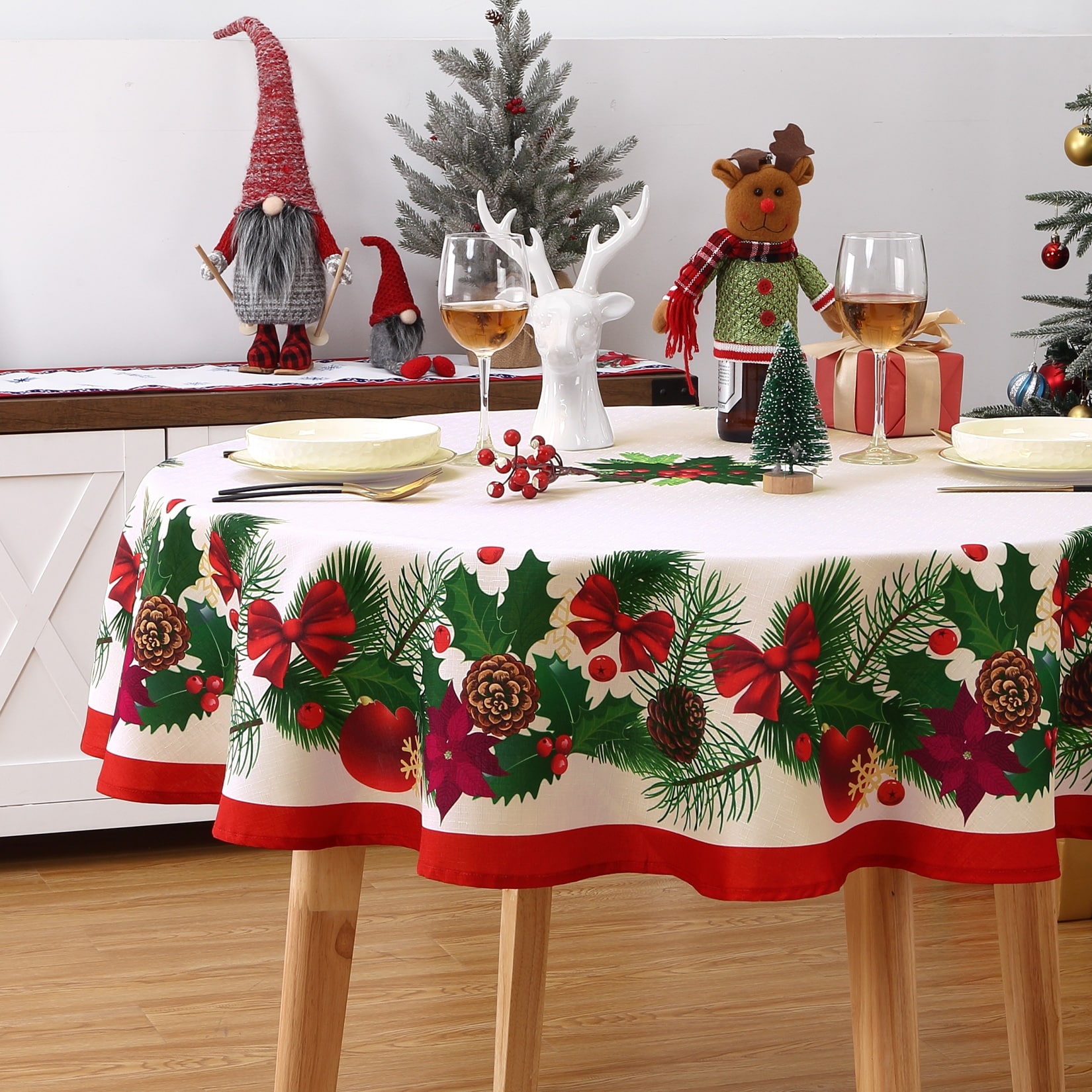 Christmas Tablecloth Holiday Holly Berry Red Flower Print Table Cover for Dining Indoor Outdoor