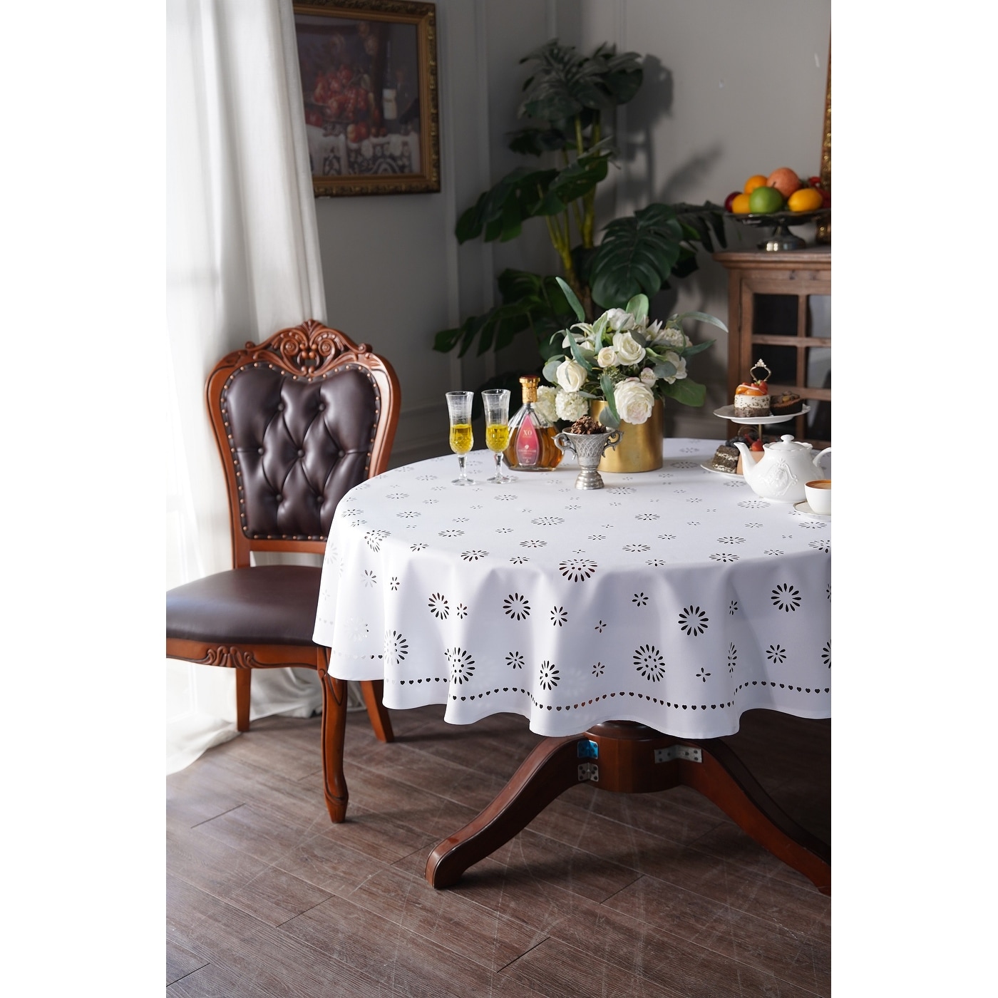 Violet Linen Daisy Eyelet Vintage Cutwork Pattern Tablecloths