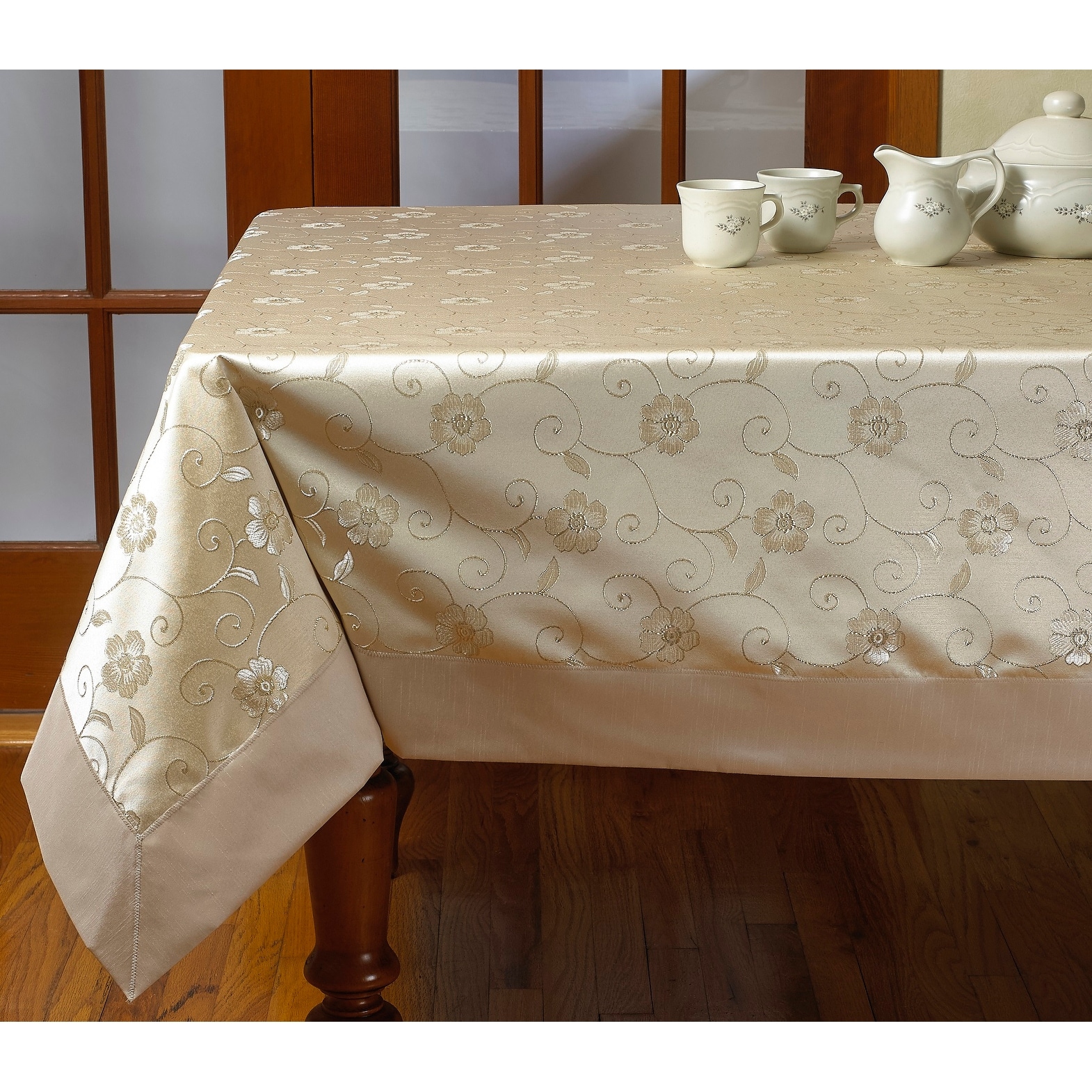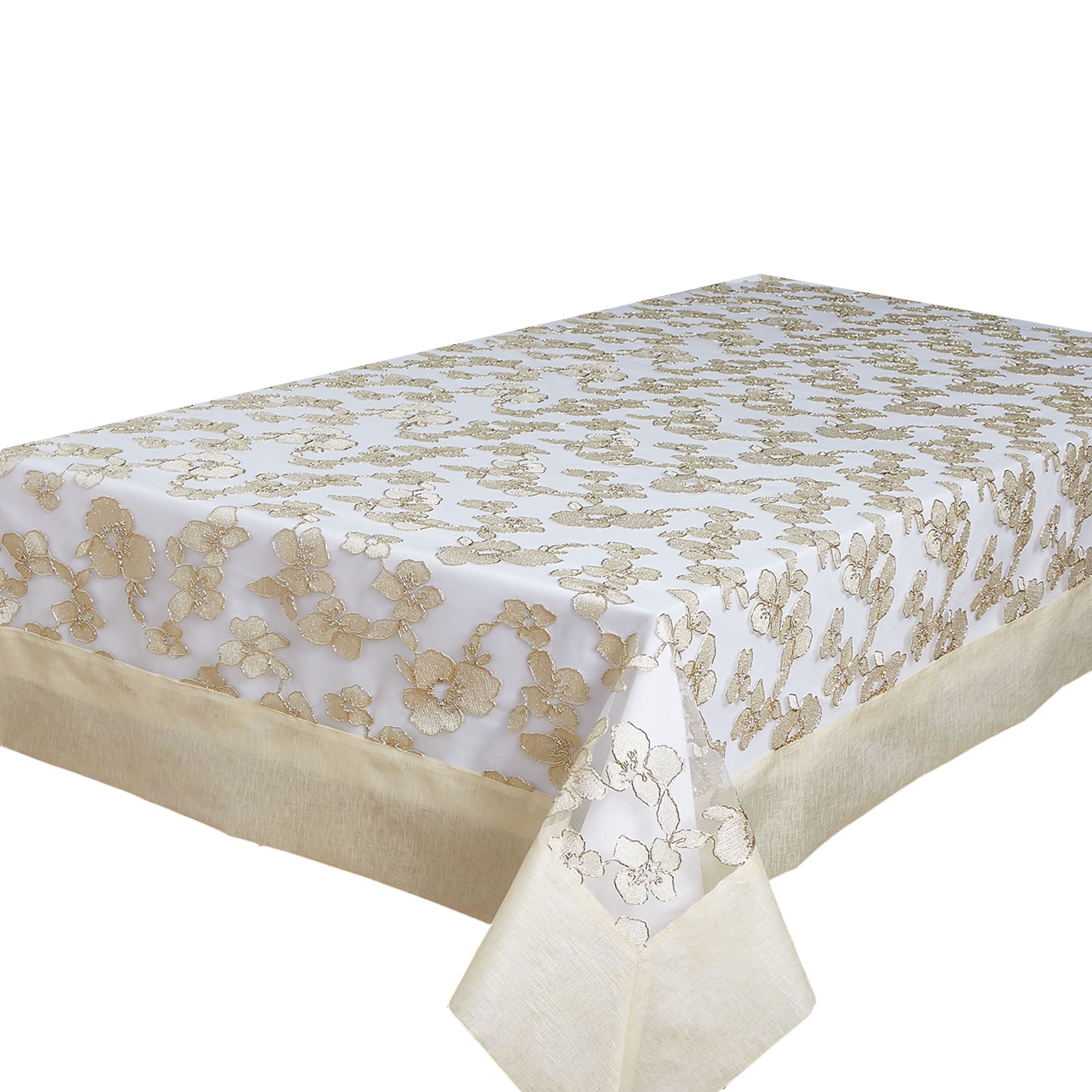 Violet Linen Ribbon Rose Mesh Lace Pattern Gold - Tablecloth