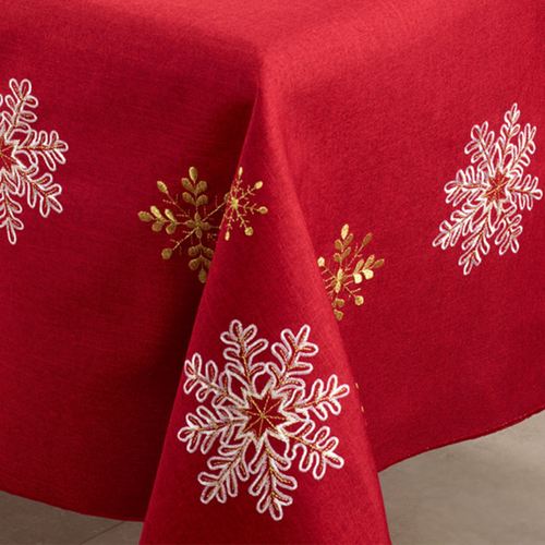 Holiday Snowflakes Oblong Tablecloth Red, 70 x 90, Red