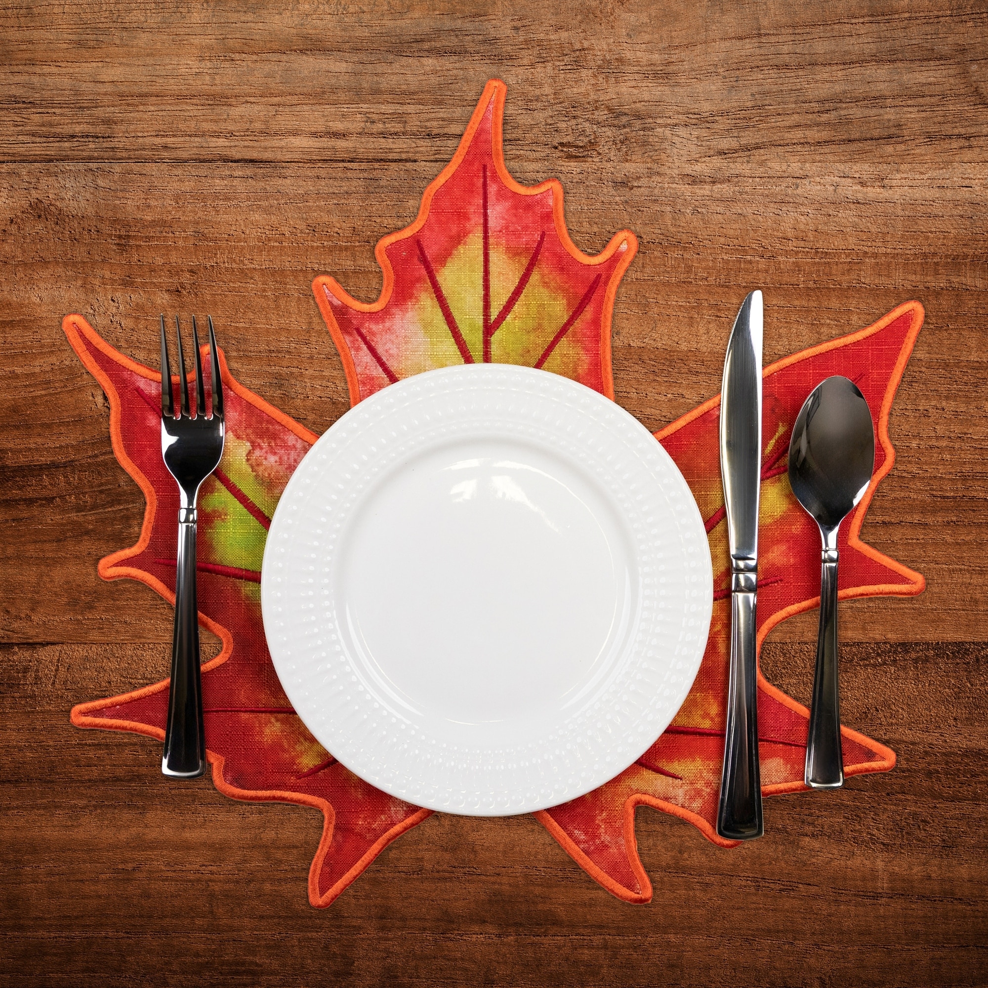 Embroidered Maple Leaf Fall Harvest Placemats - 14.75" - Orange and Red - Set of 4