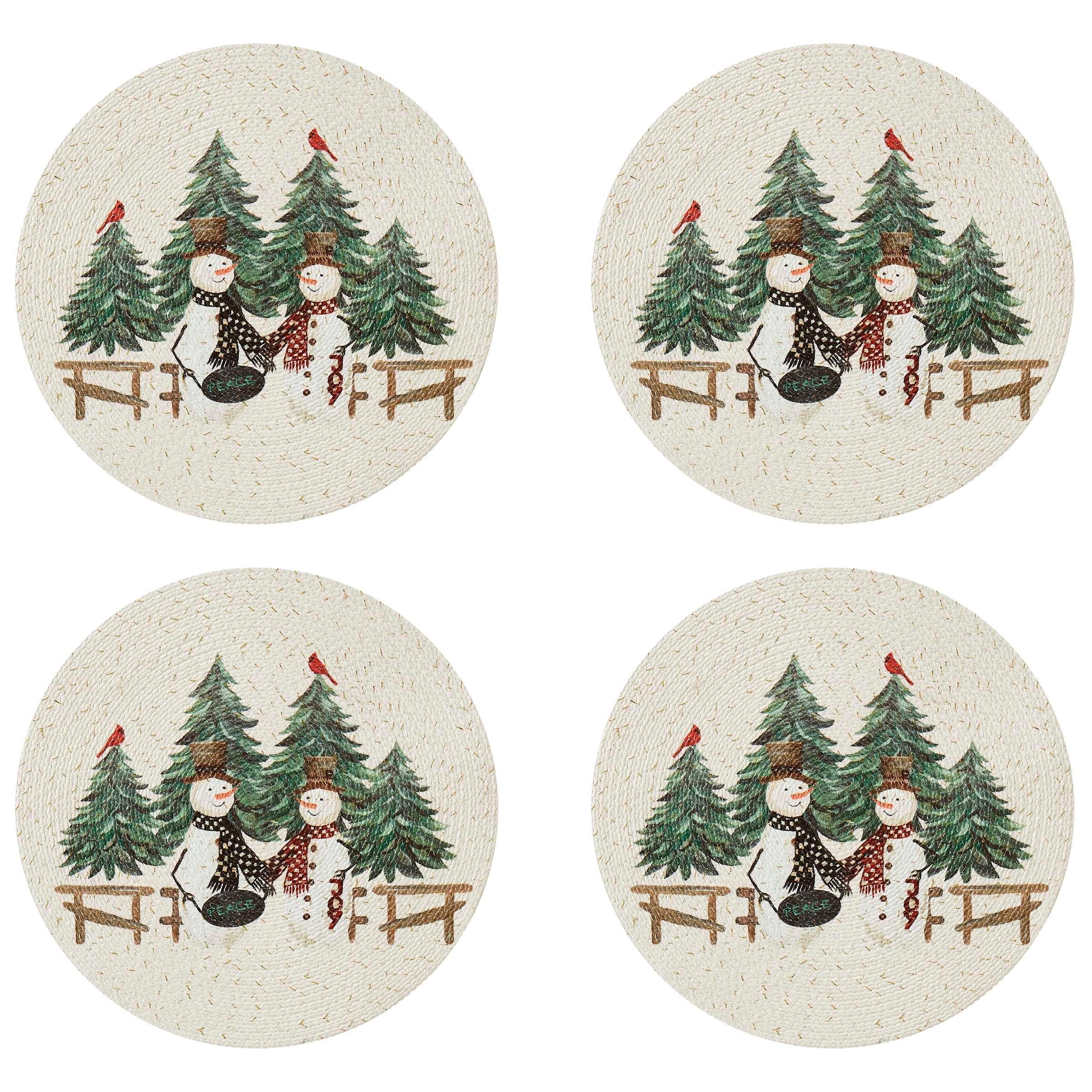 Avanti Linens Country Snowman Set of 4 Round Placemats