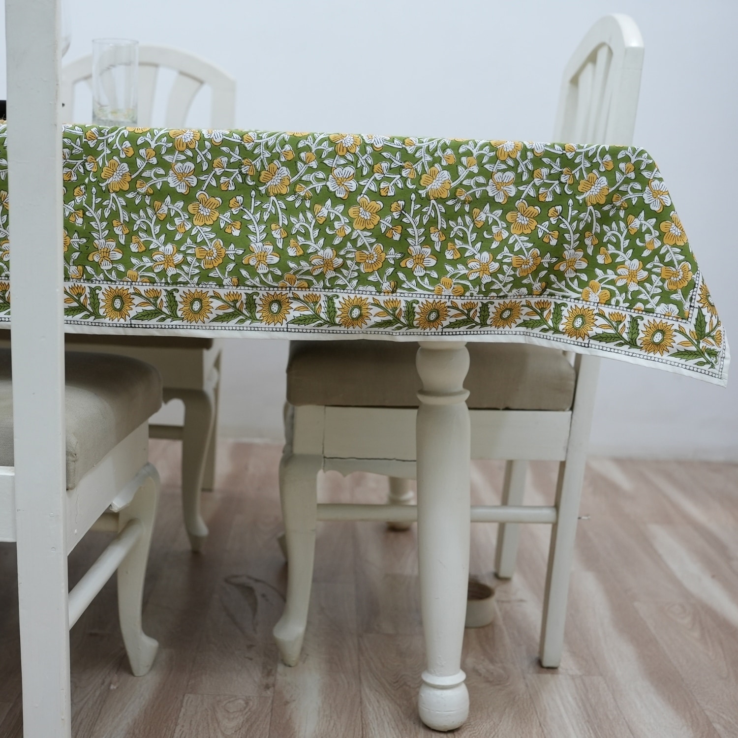 Fabdivine Handmade Block Print Cotton Brown Table Cover or Cloth Dining, Farmhouse & Kitchen Décor