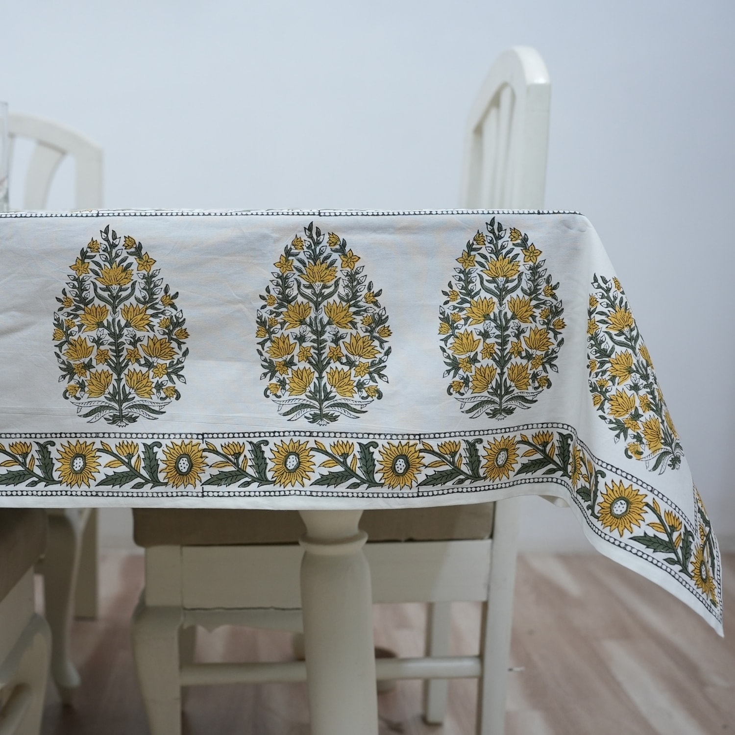 Block Print Cotton Verdant Floral Paisley Tablecloth Collection
