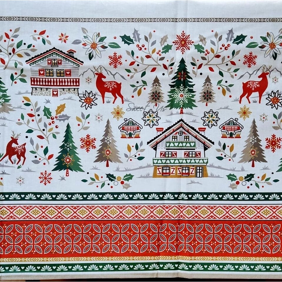 Christmas Tablecloth With Beautiful Pinecone And Holly Print
