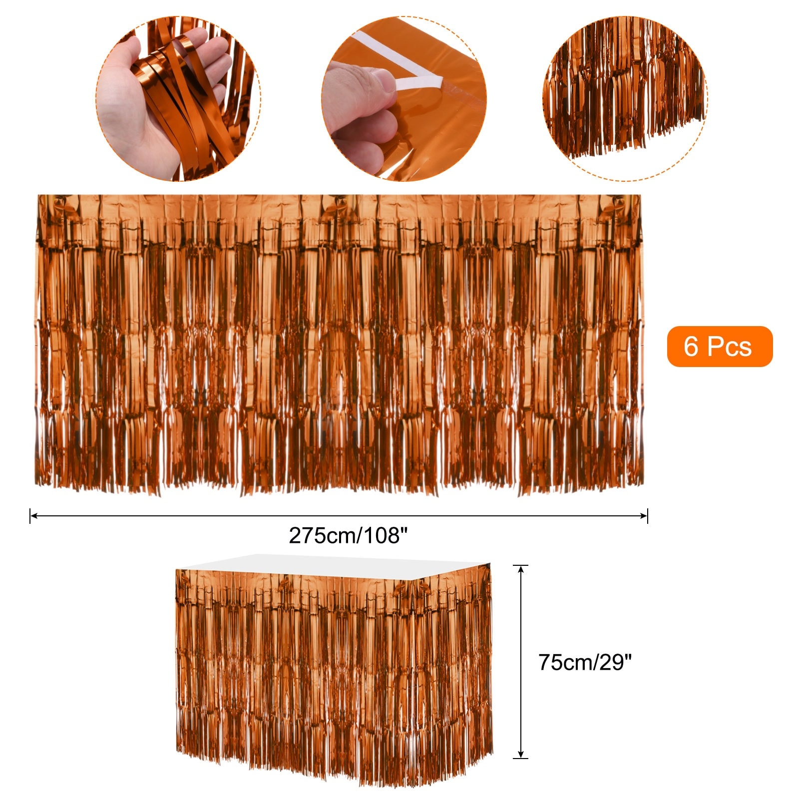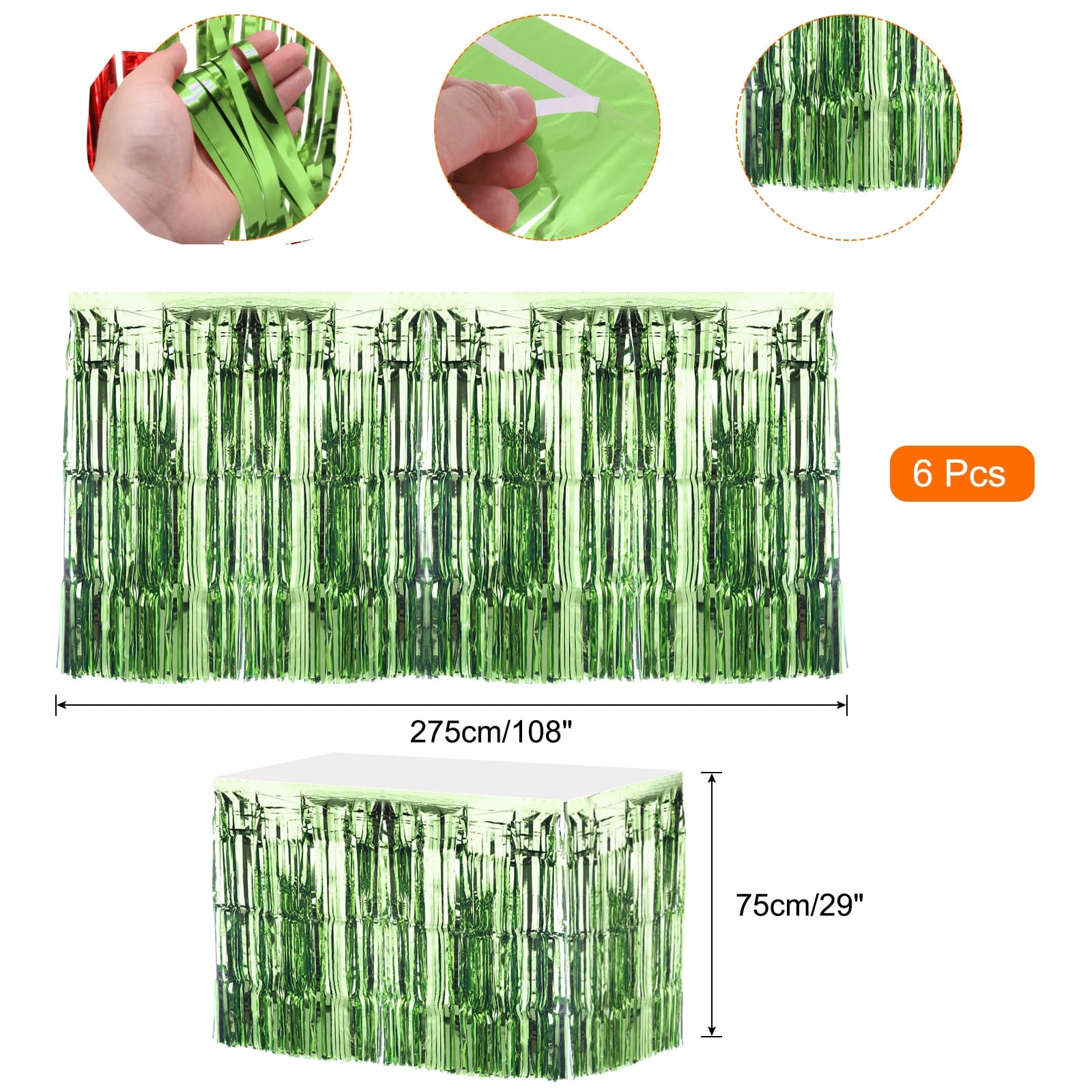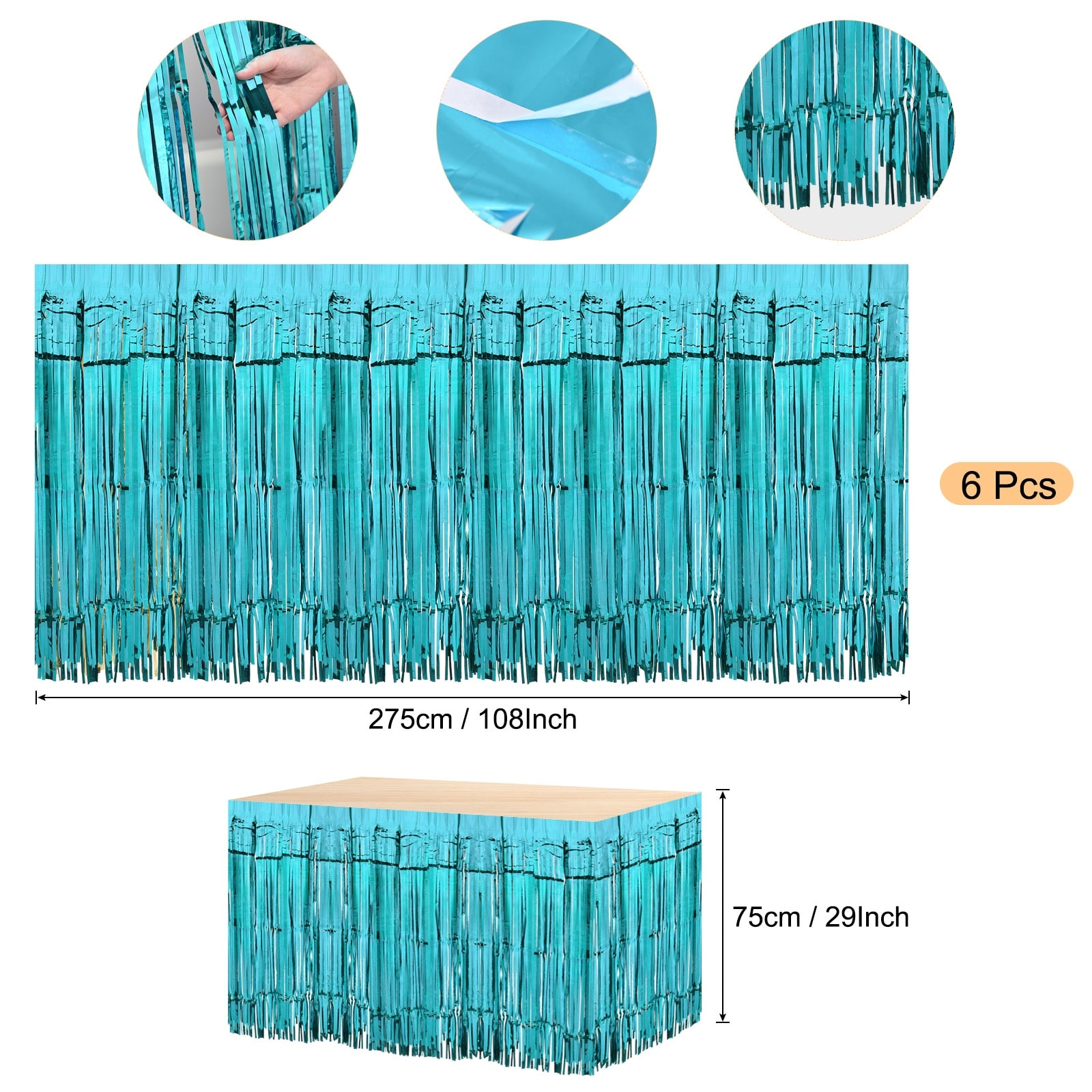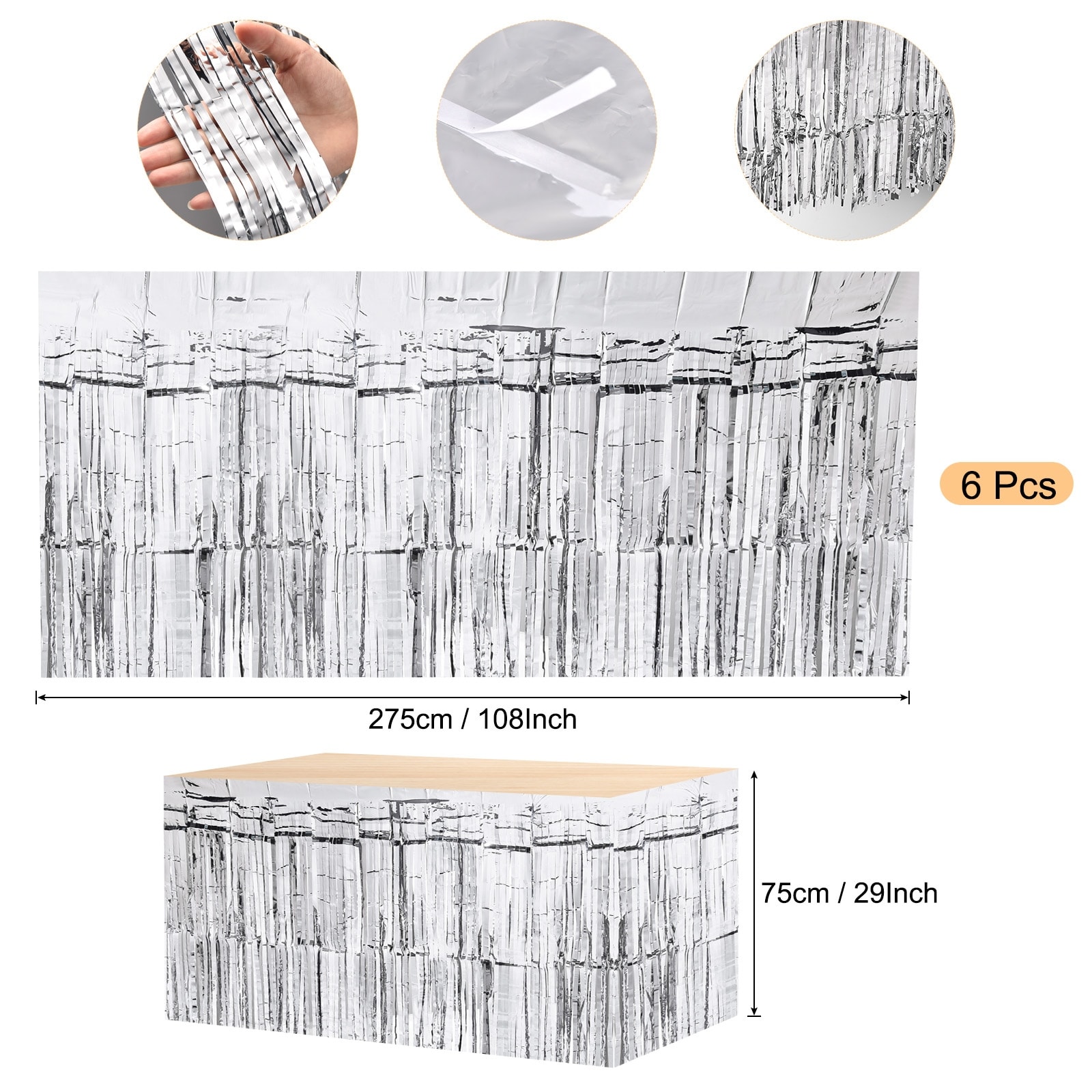 6 Pcs 29x108 Inch Metallic Foil Fringe Tinsel Table Skirts - 29x108 Inch