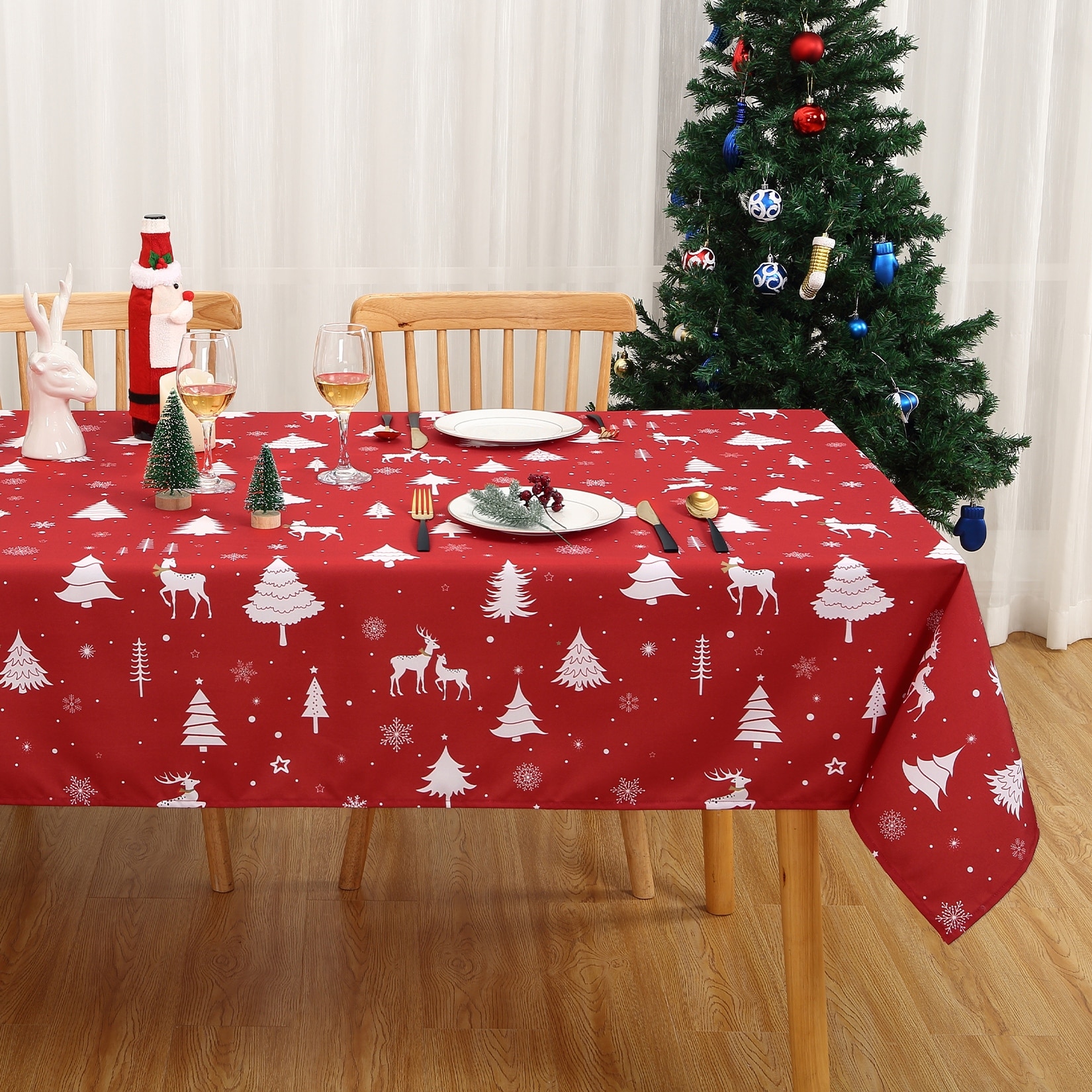 Christmas Tablecloth, Deer, Pine Trees & Snowflakes Design, Waterproof Holiday Dining Decor