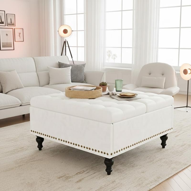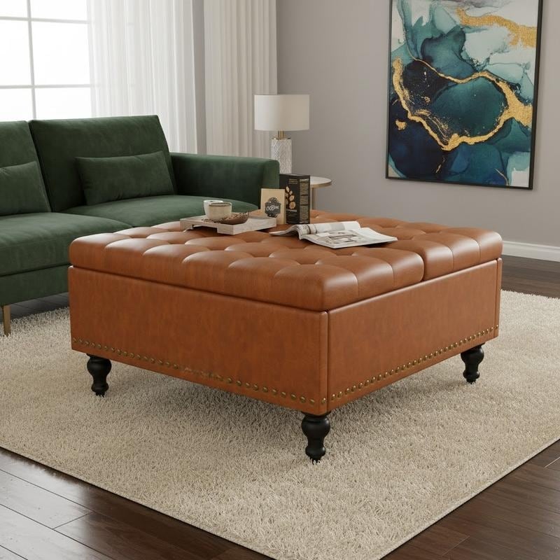 Leather Ottoman Coffee Table, Upholstered Footrest, 5 Color Options
