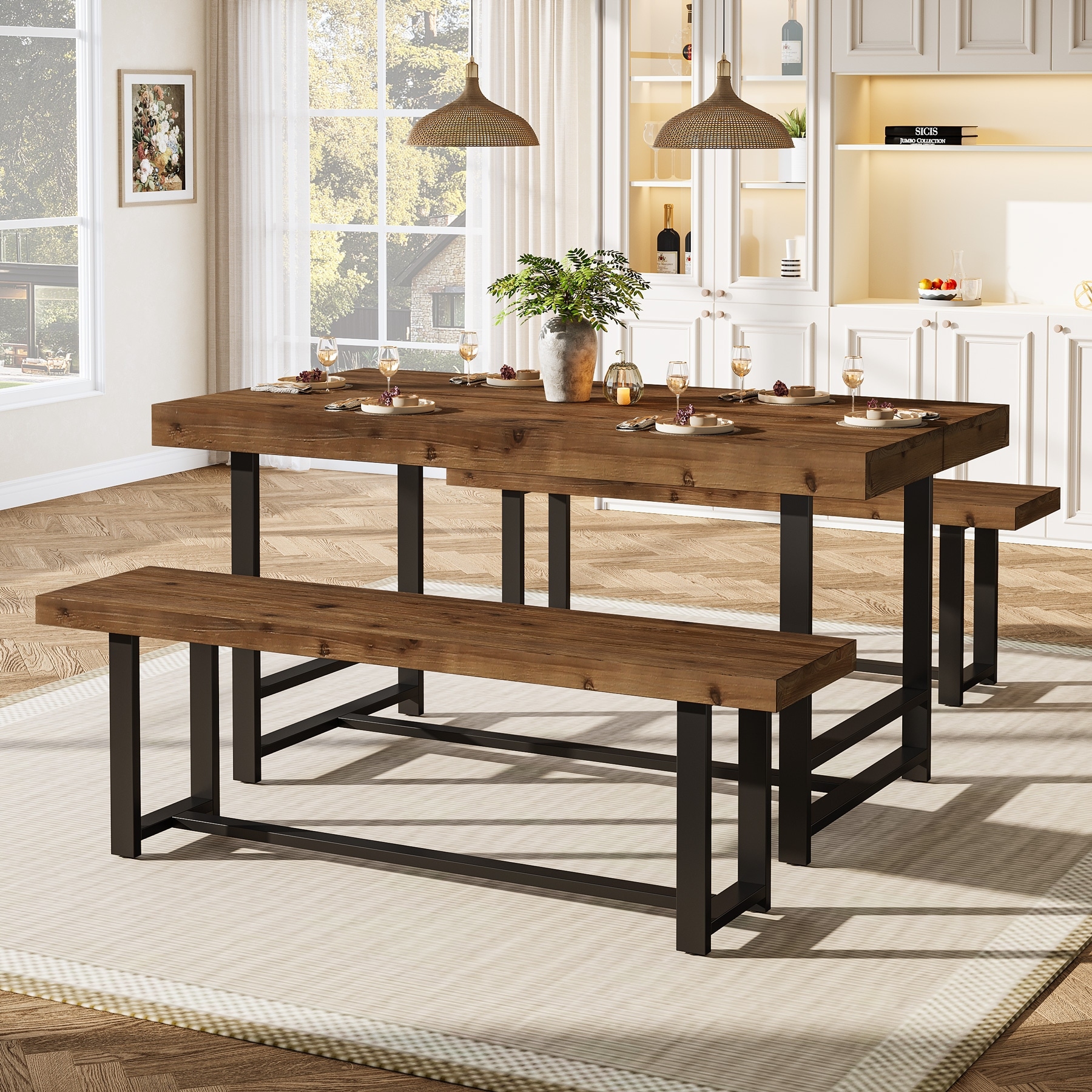Rustic Rectangular 4-Person Dining Set with 2 Chairs