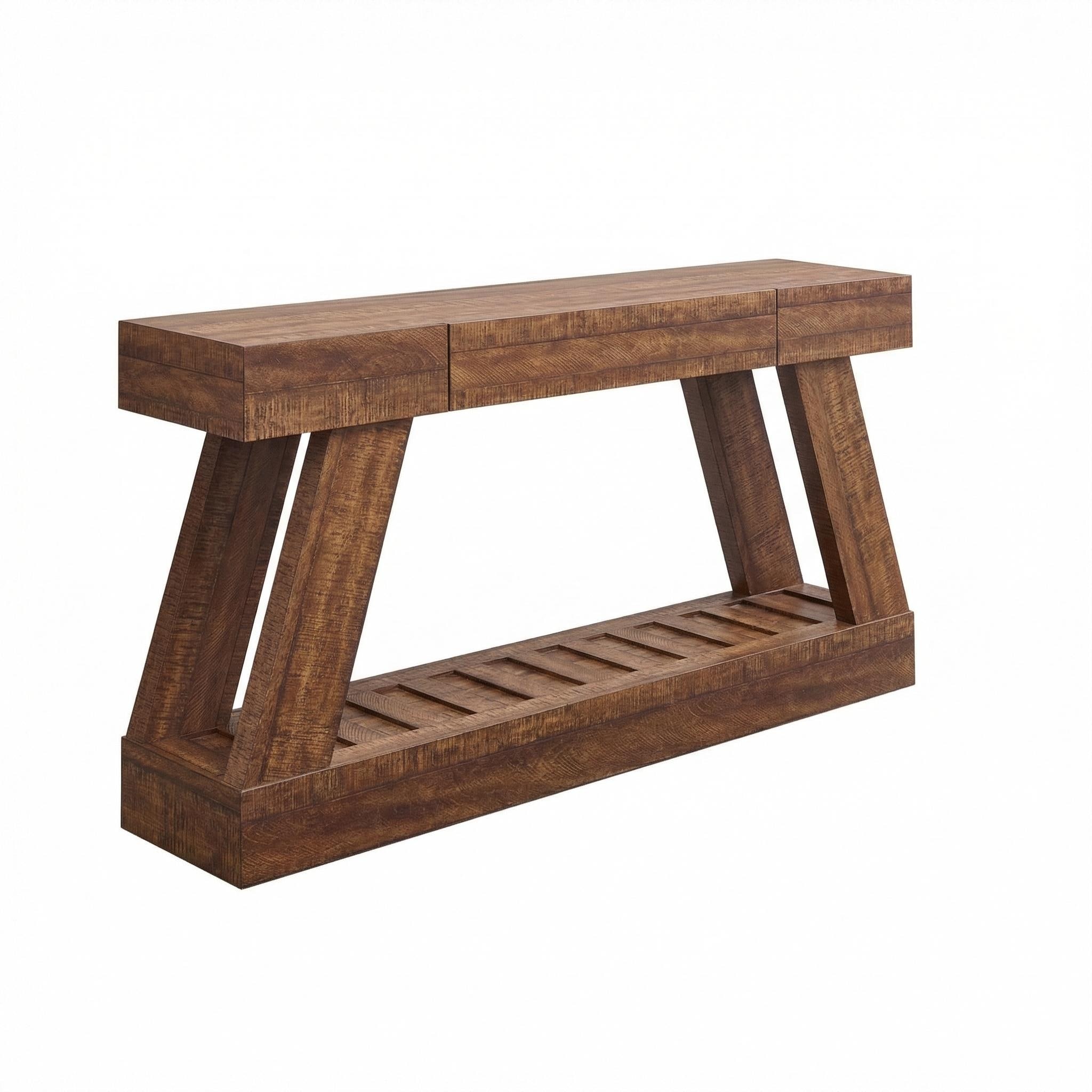 60" Farmhouse Console Table with Drawer and Bottom Shelf, Rustic Entryway Sofa Table for Hallway Living Room