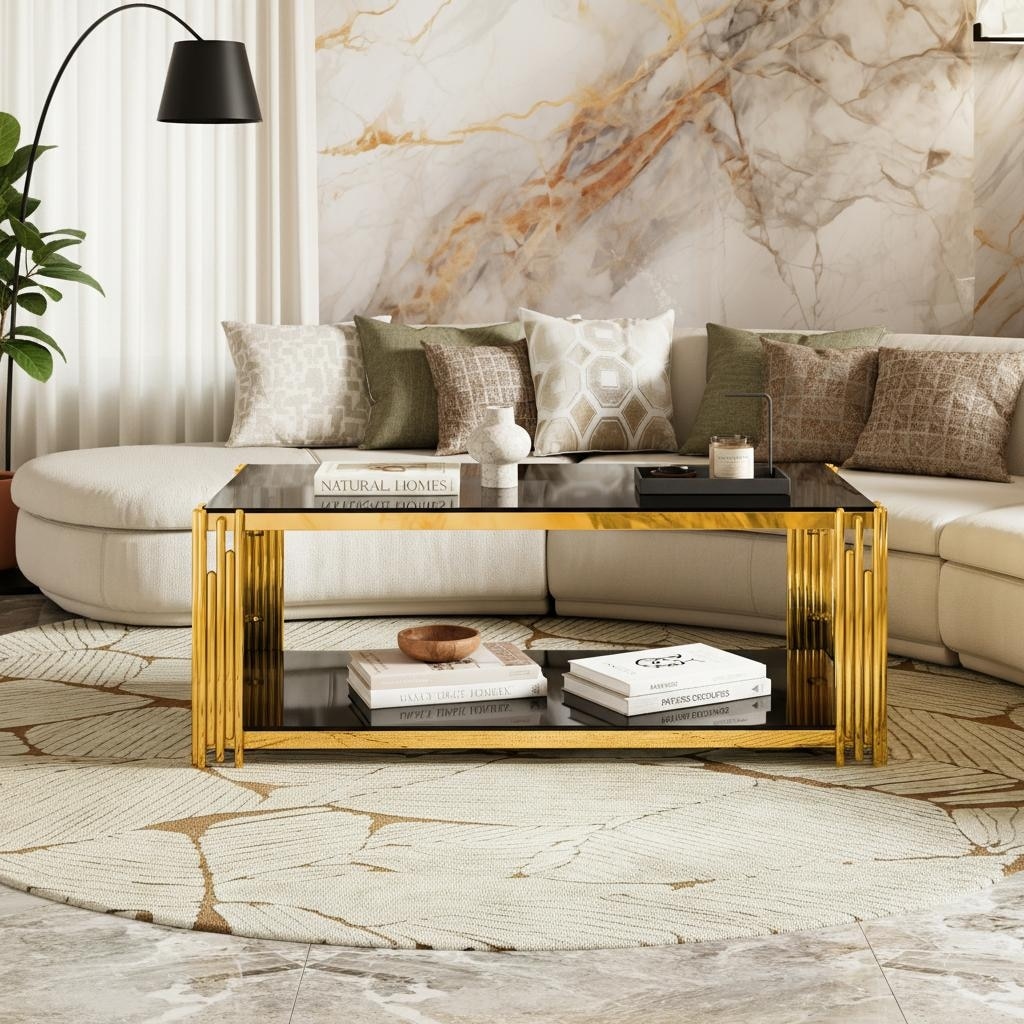 Rectangular Gold & Glass Coffee Table with 2-Tier Shelf by Harper&Bright Designs