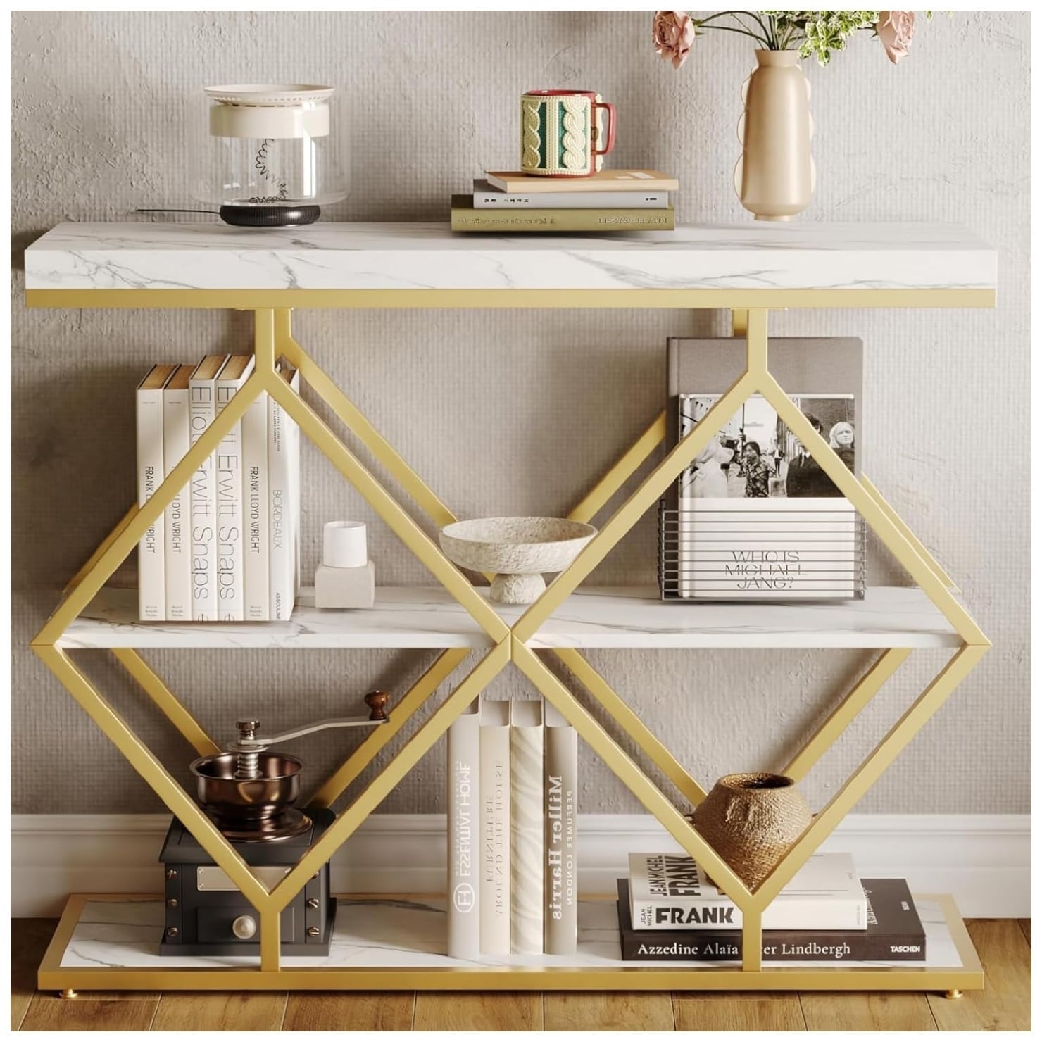 3-Tier Entryway Table, Industrial Console Sofa Table with Storage, Accent Table with Open Shelves