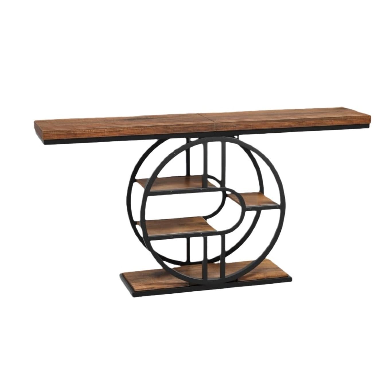 55 Inch Industrial Console Table, 4-Tier Entryway Table with Circle Base, Sofa Table