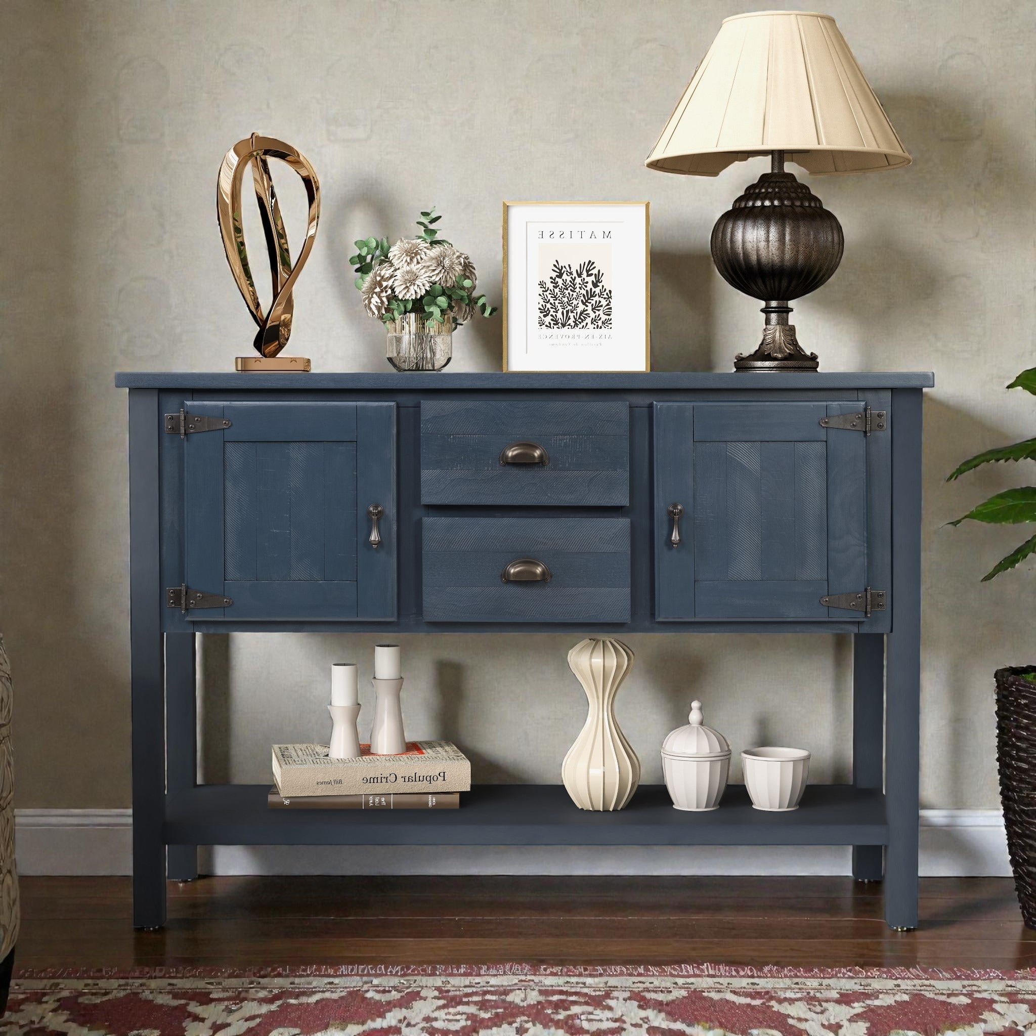 Solid Wood Console Table with Drawers and Cabinets, Retro Storage Sideboard with Bottom Shelf for Entryway Living Room - Pine