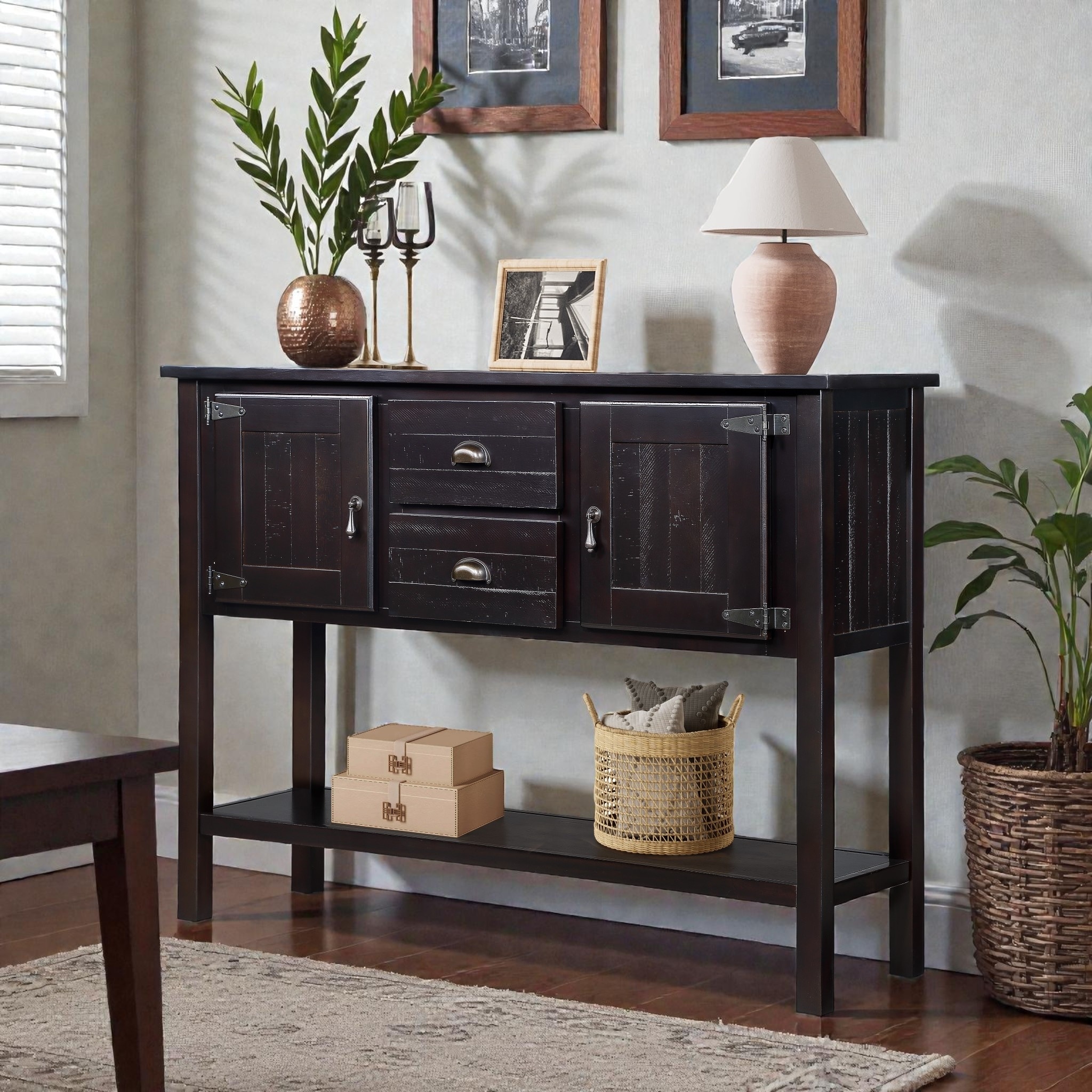 Farmhouse Pine Wood Console Table with Ample Storage and Classic Design