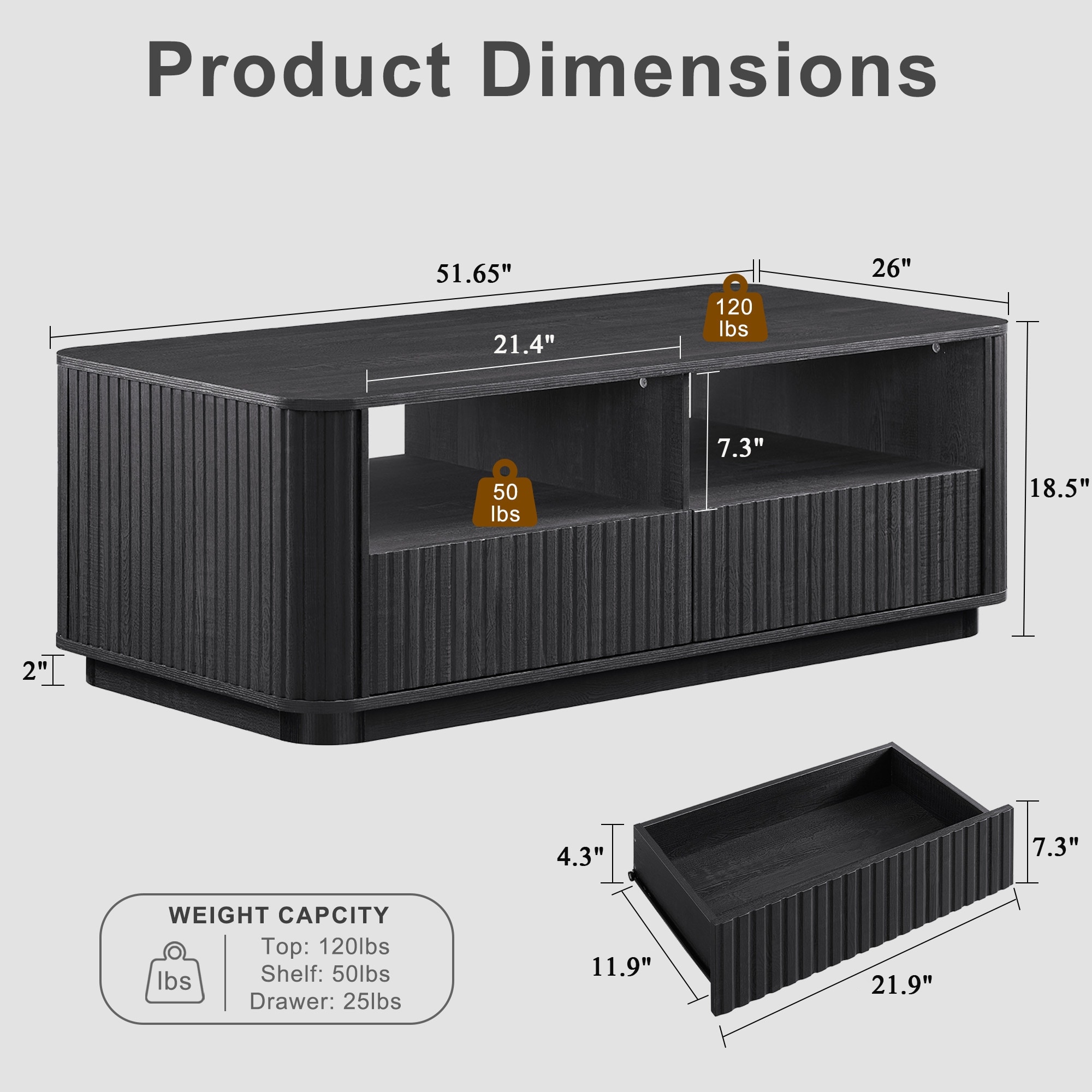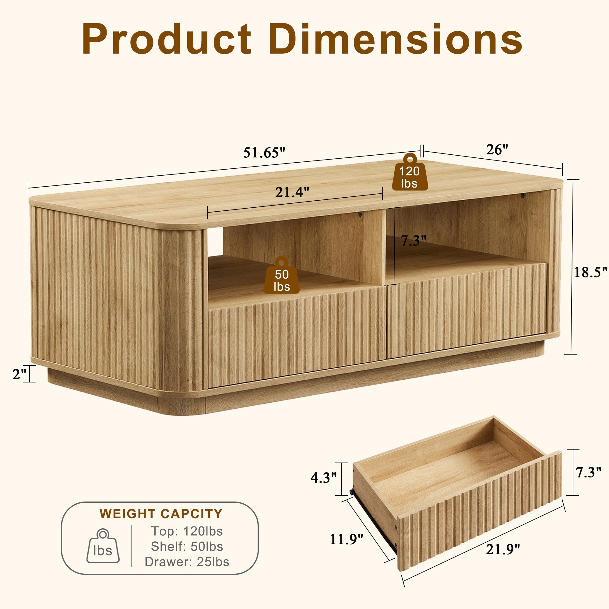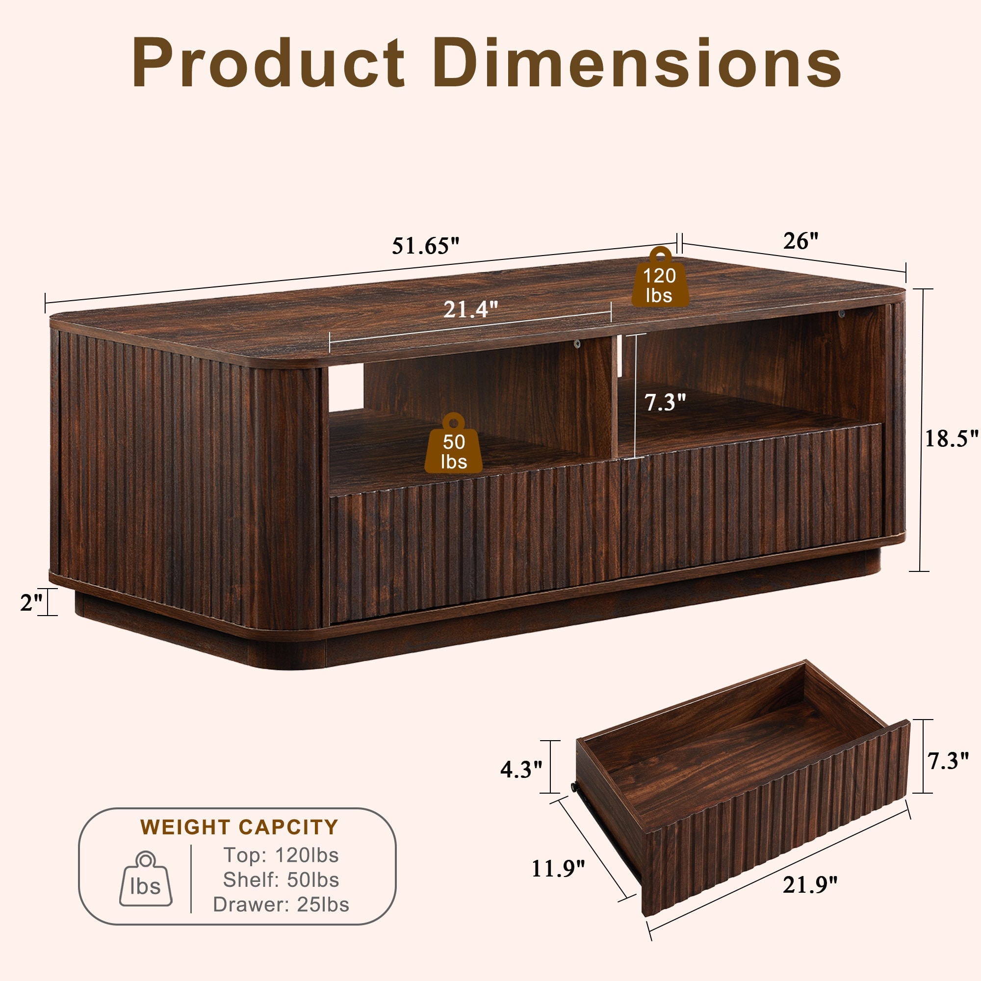 51" Modern Coffee Table, Hidden Drawers, Wood Center Table, Sofa Table