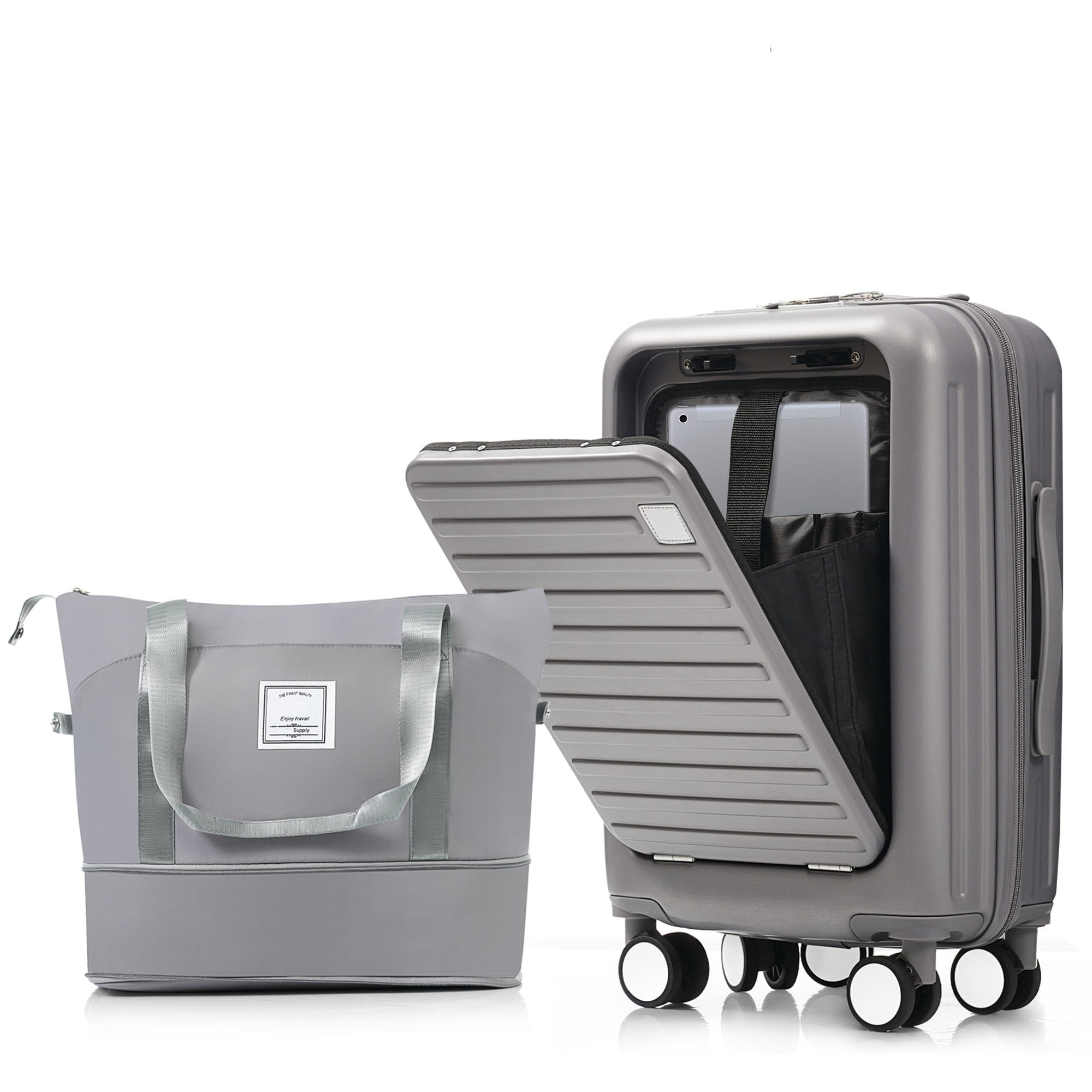 Front Opening 20Inch Carry-On Luggage with Expandable Travel Bag Set, ABS Hard Shell Suitcase with USB Port and Cup Holder