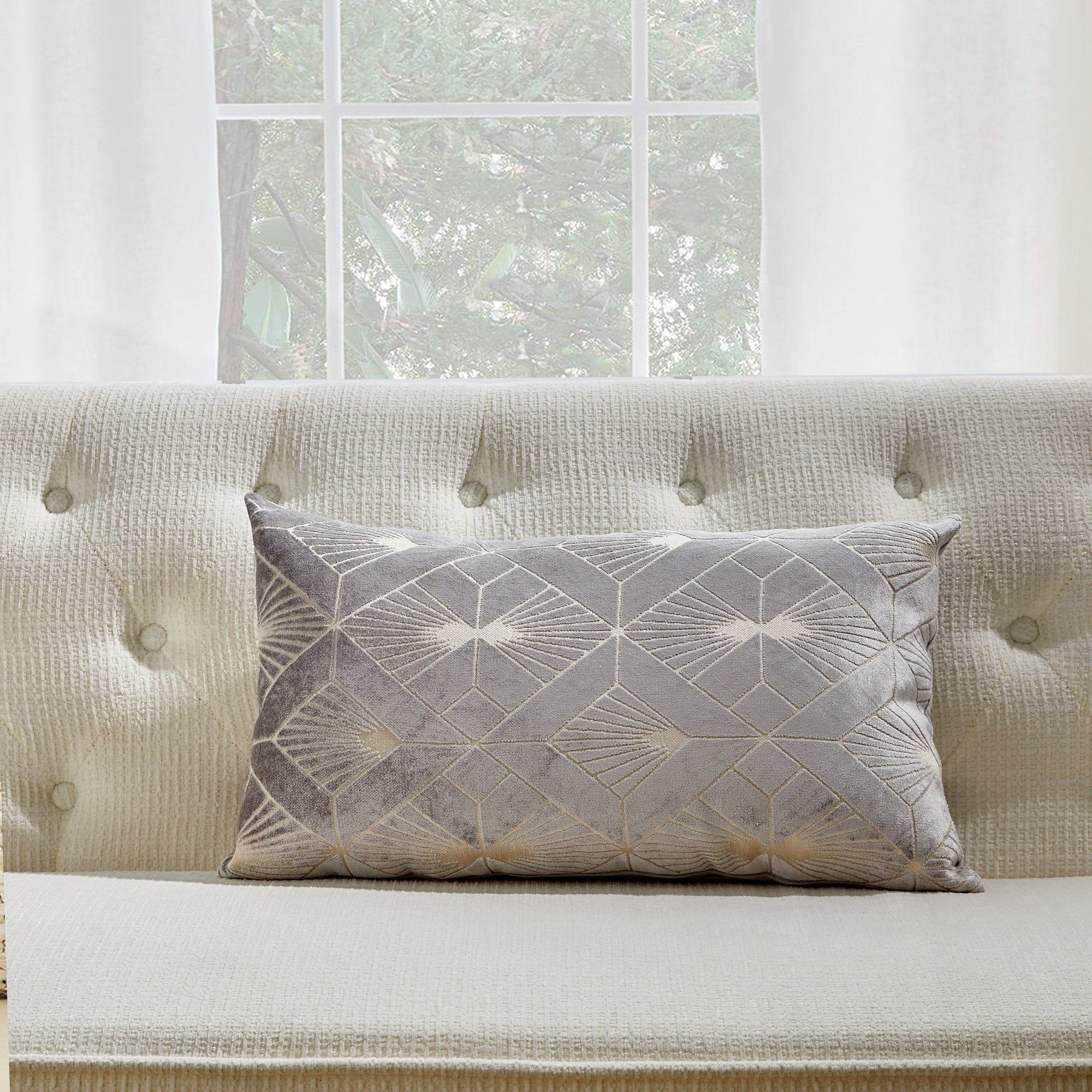 Rectangular Gray With Brushed Diamond Pattern And Feather Insert Pillow