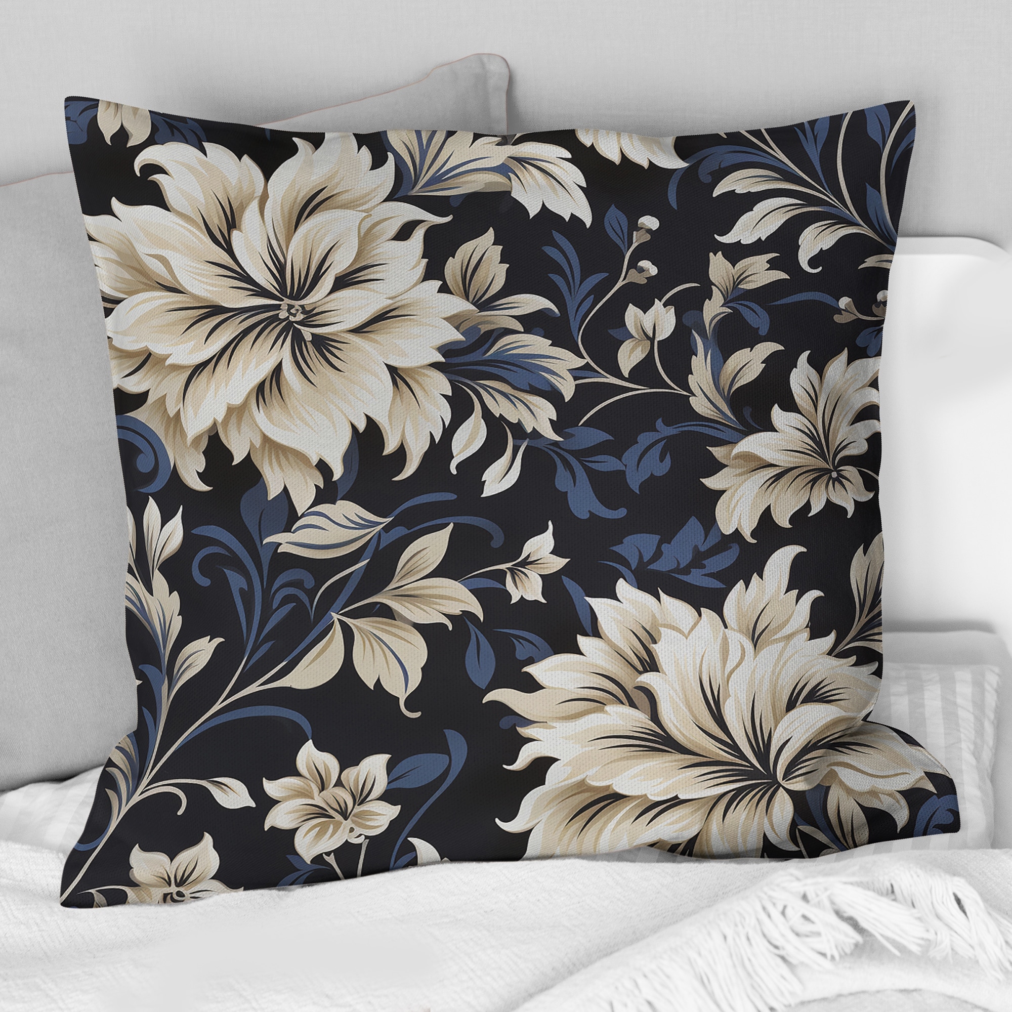 Designart "Dark Blue Beige Flower Damask Breeze" Damask Printed Throw Pillow