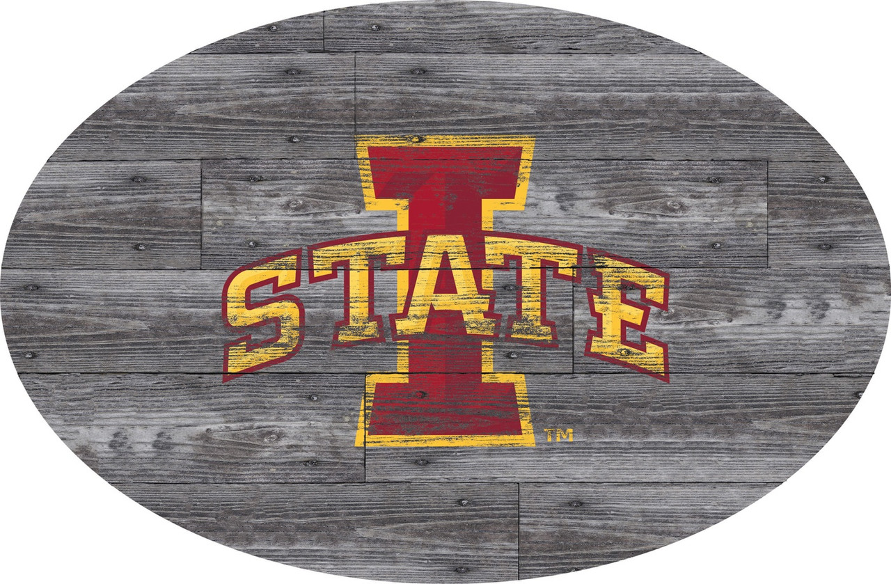 Iowa State Cyclones 46" Distressed Wood Oval Sign