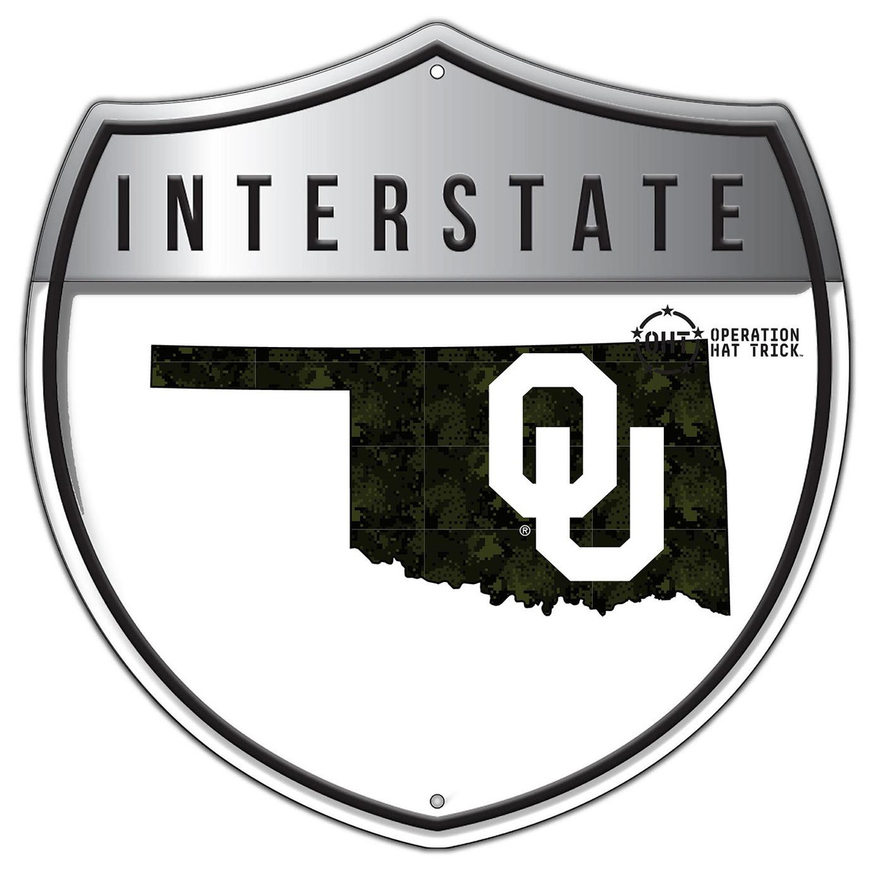 Oklahoma Sooners OHT Camo Metal 24" Interstate Sign