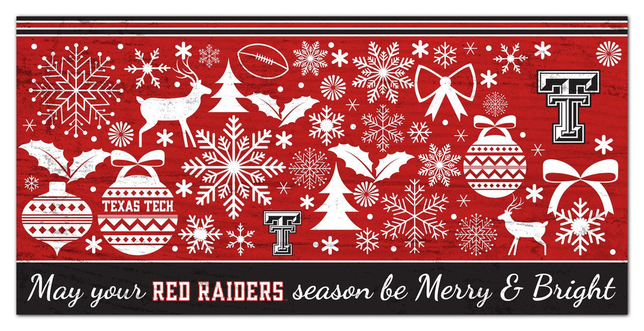 Texas Tech Red Raiders 6" x 12" Merry & Bright Sign
