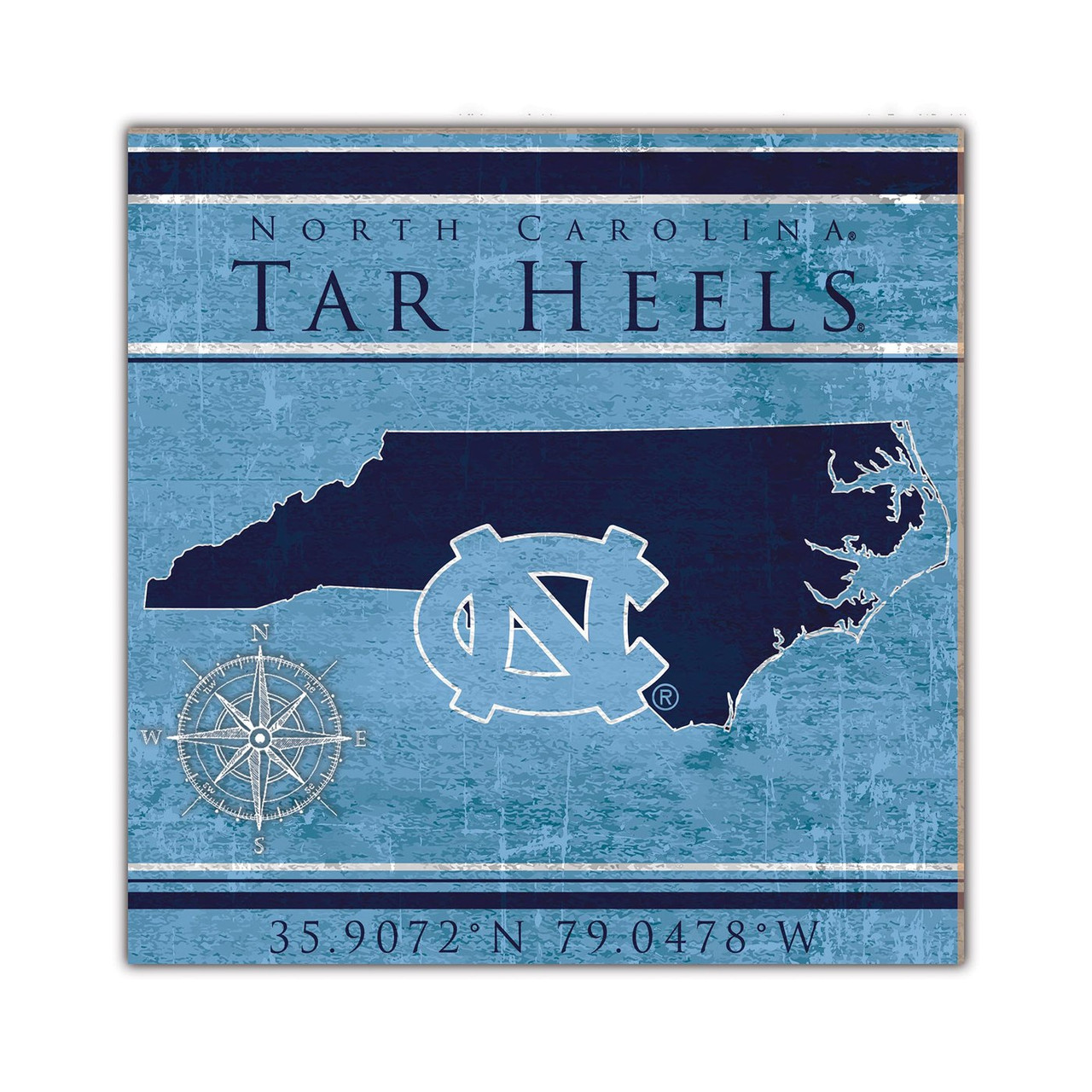 North Carolina Tar Heels Coordinates 10" x 10" Sign