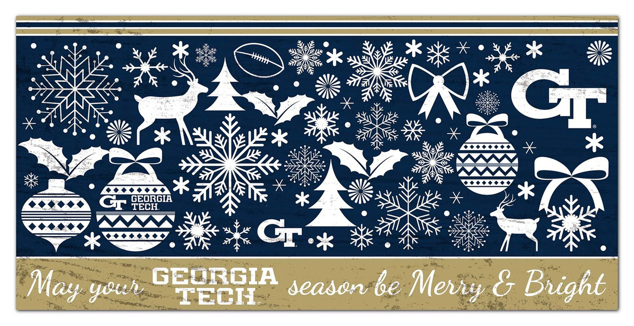 Georgia Tech Yellow Jackets 6" x 12" Merry & Bright Sign