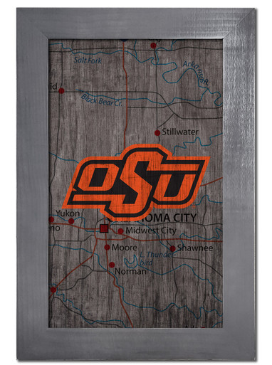 Oklahoma State Cowboys 11" x 19" City Map Framed Sign