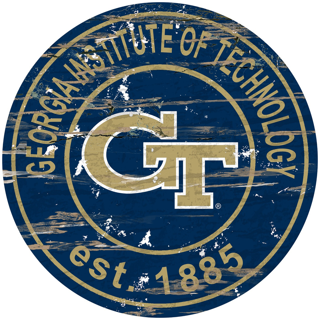 Georgia Tech Yellow Jackets Distressed Round Sign