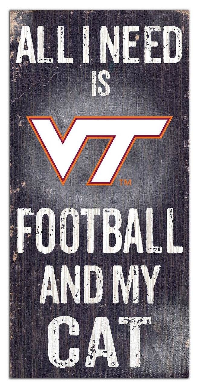 Virginia Tech Hokies 6" x 12" Football & My Cat Sign