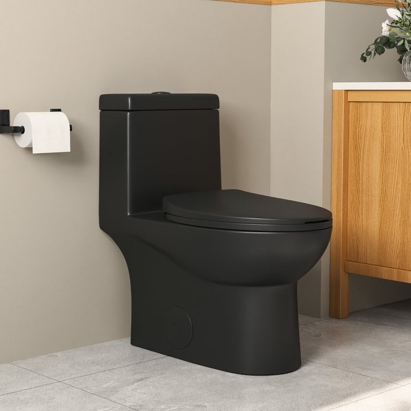 Fine Fixtures Dual-Flush One-Piece Toilet With High-Efficiency Flush, 12" Rough-in, Elongated bowl
