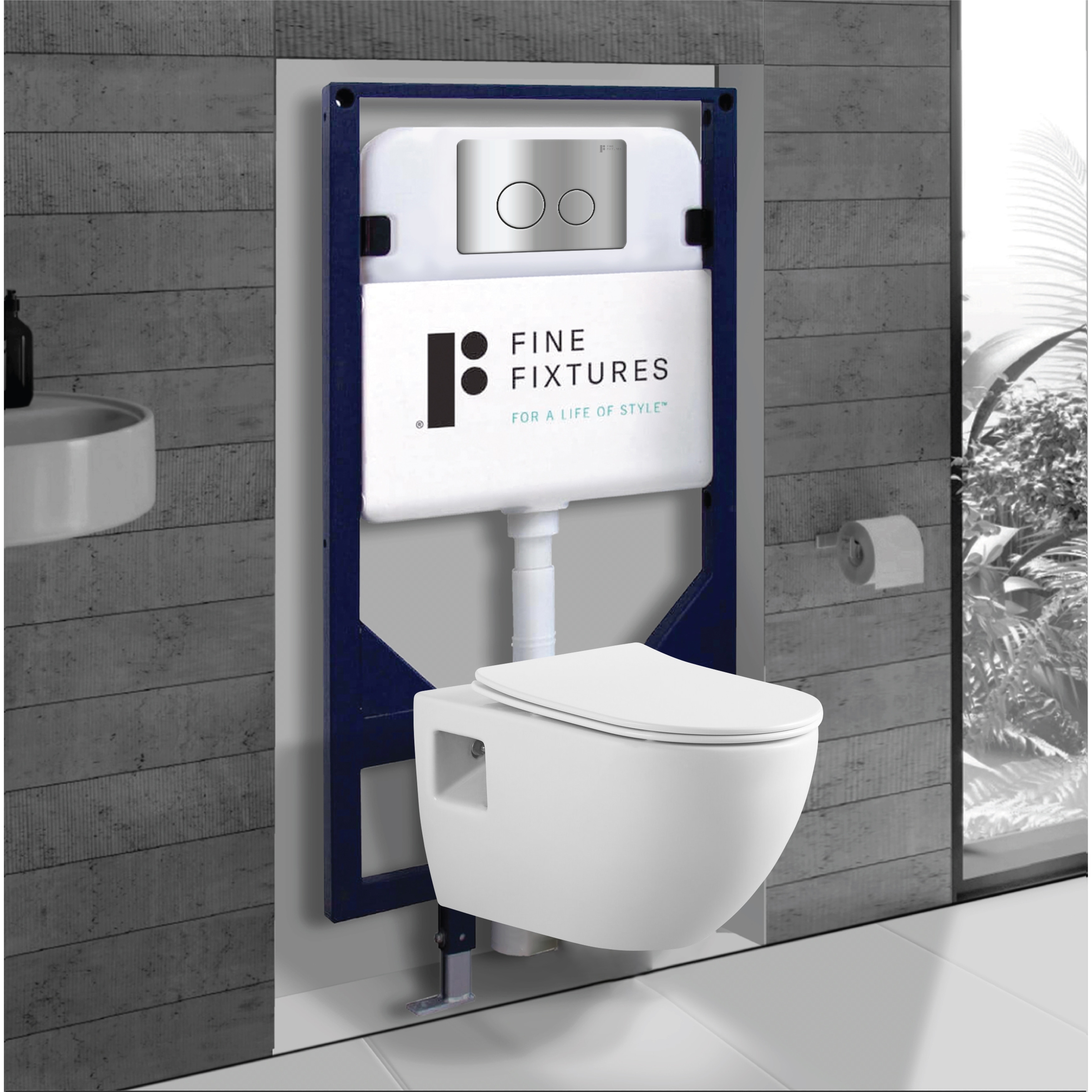 Fine Fixtures Surge Wall Hung Toilet with Universal In-Wall Tank Carrier and Push Plate