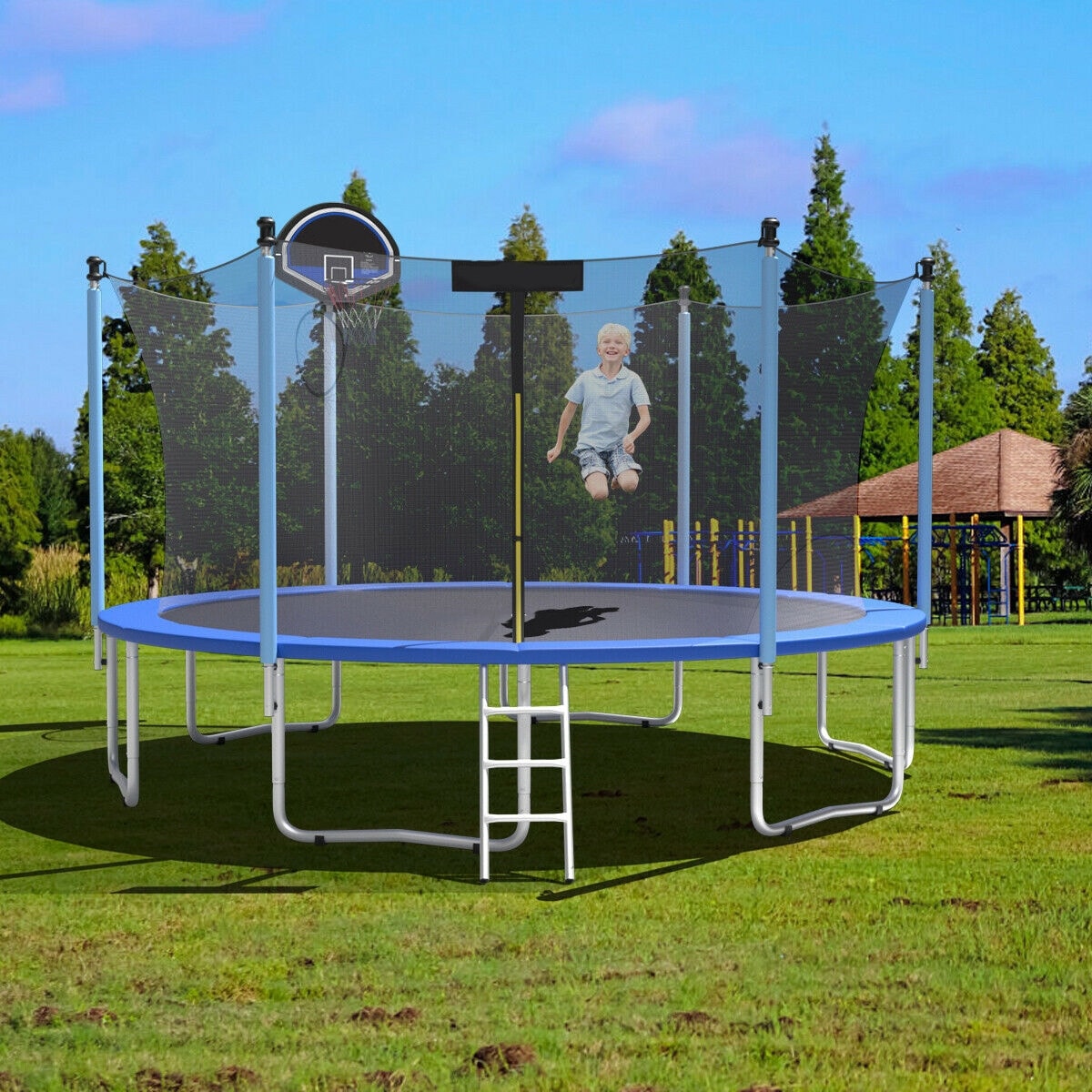 Trampoline with Basketball Hoop, Outdoor Trampoline with Enclosure Net