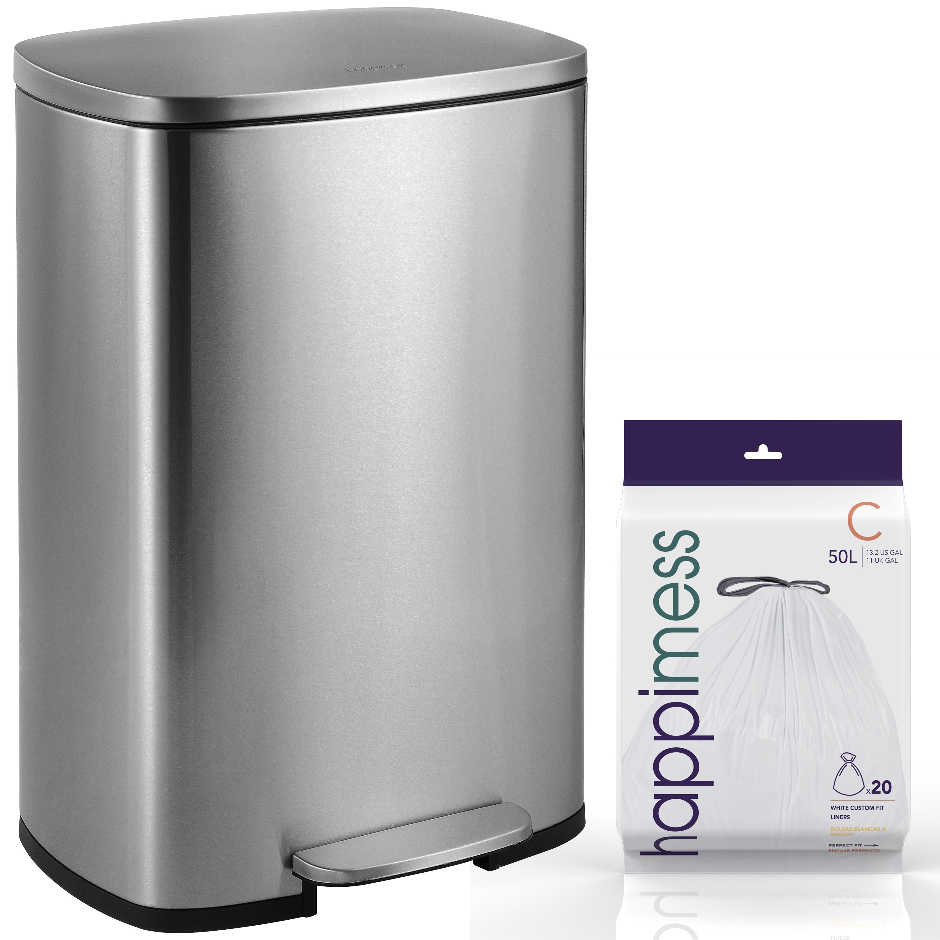 happimess Oscar Round 8-Gallon Step-Open Trash Can with FREE Mini Trash Can, Stainless Steel/Black