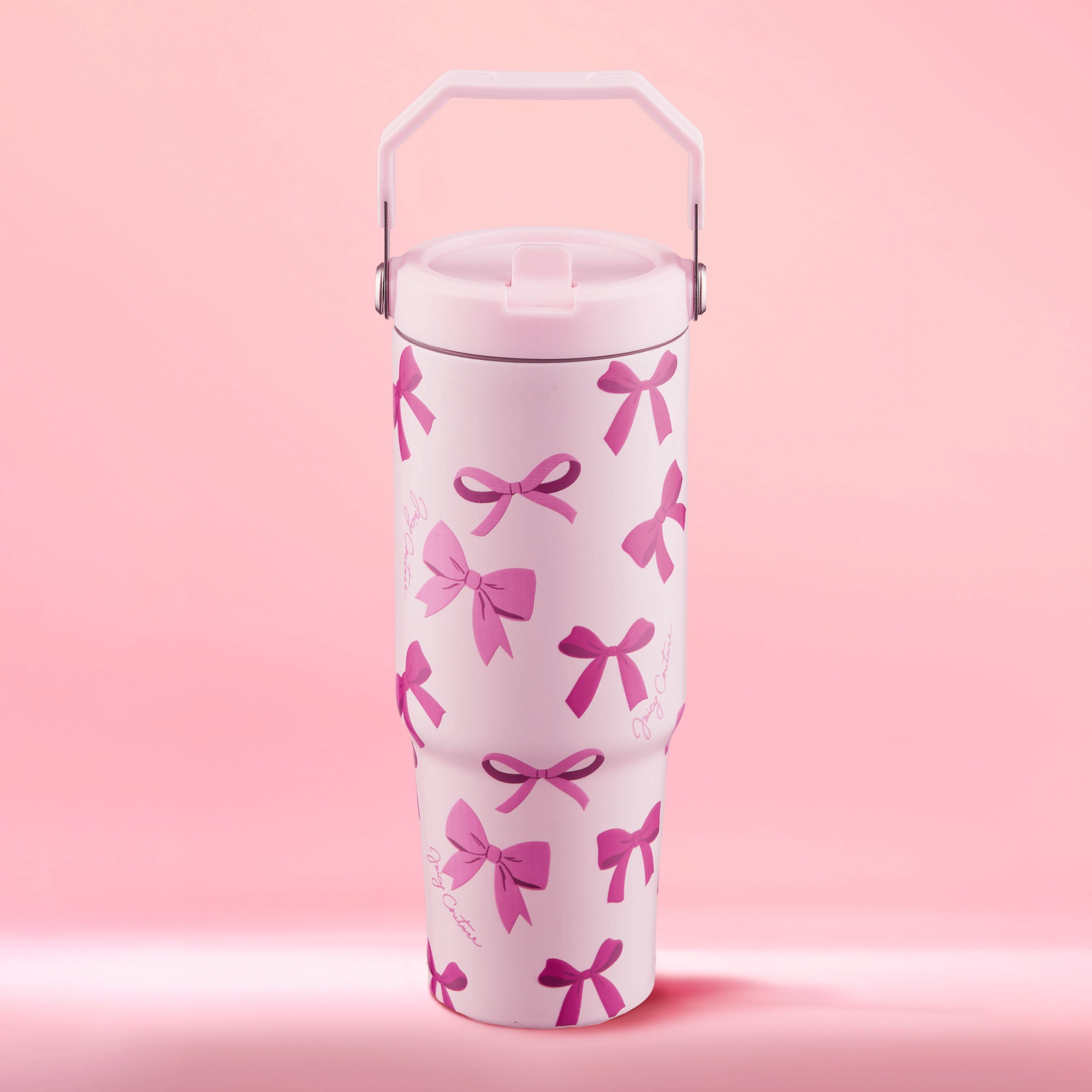 Juicy Couture Flip & Sip Hydration Stainless Steel Screw Top Tumbler with Flip Straw and Carry Handle