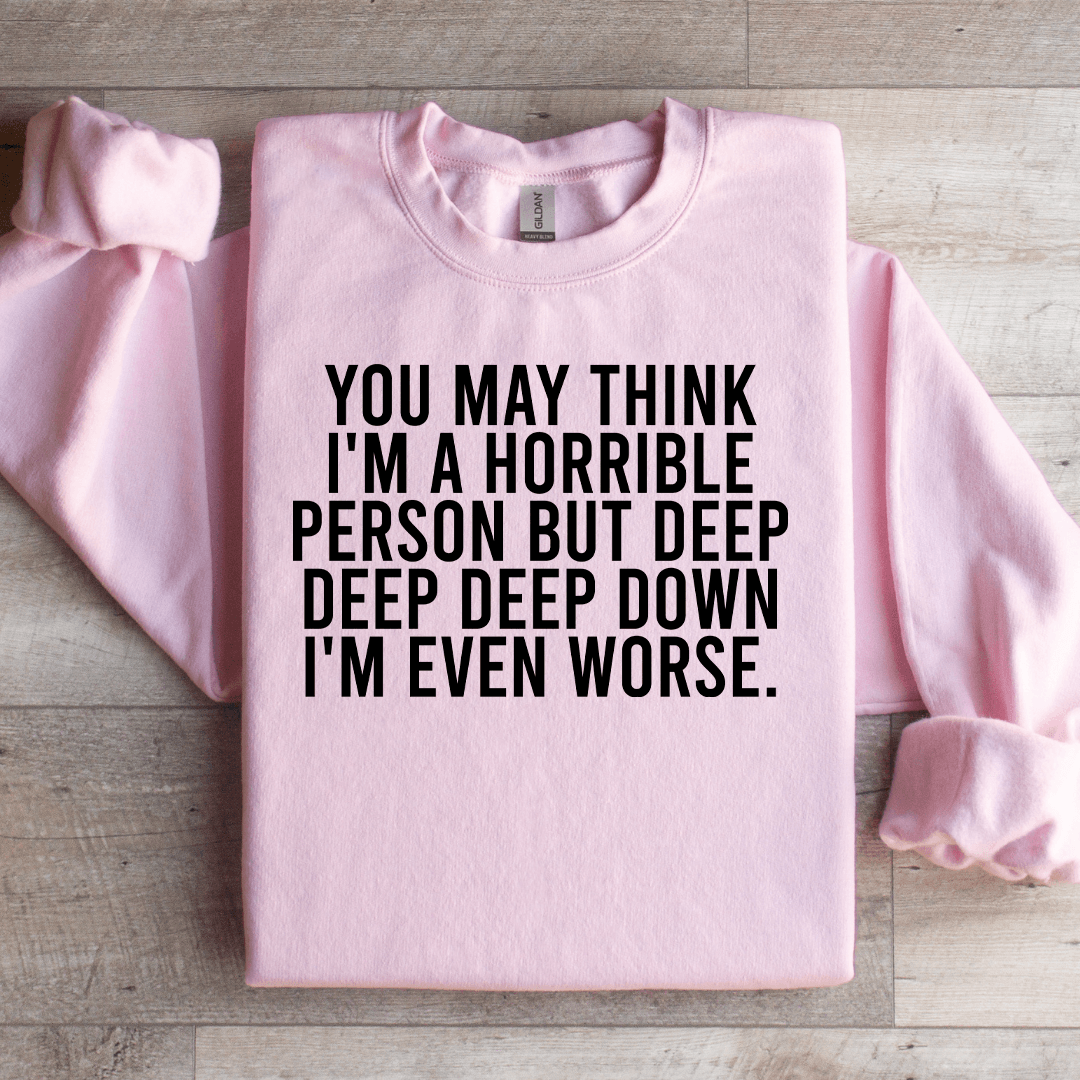 You May Think I'm A Horrible Person Sweatshirt 3XL Light Pink