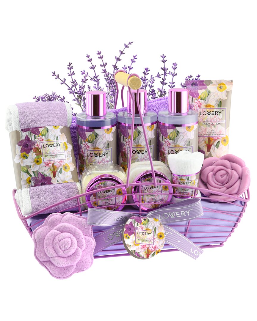 Lovery Body Care Gift Basket, 13Pc Vanilla Lavender Home Spa Set, Thank You Gift
