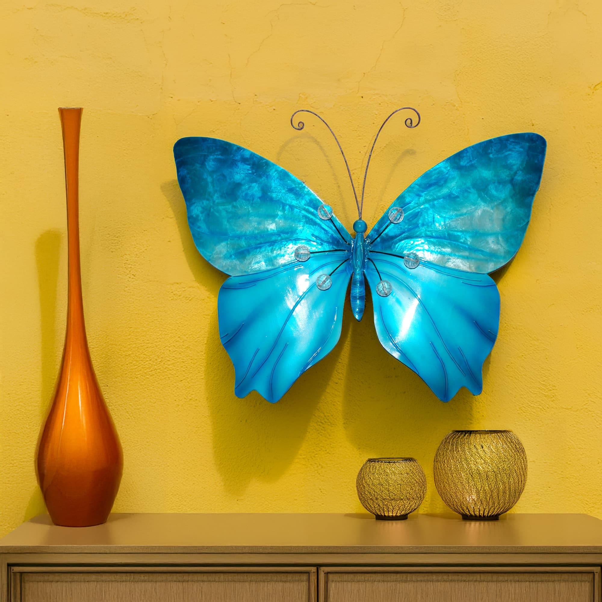 Eangee Handmade Butterfly Capiz Shell Wall Decor Sea Blue With Beads, 18 x 1 x 13 in.