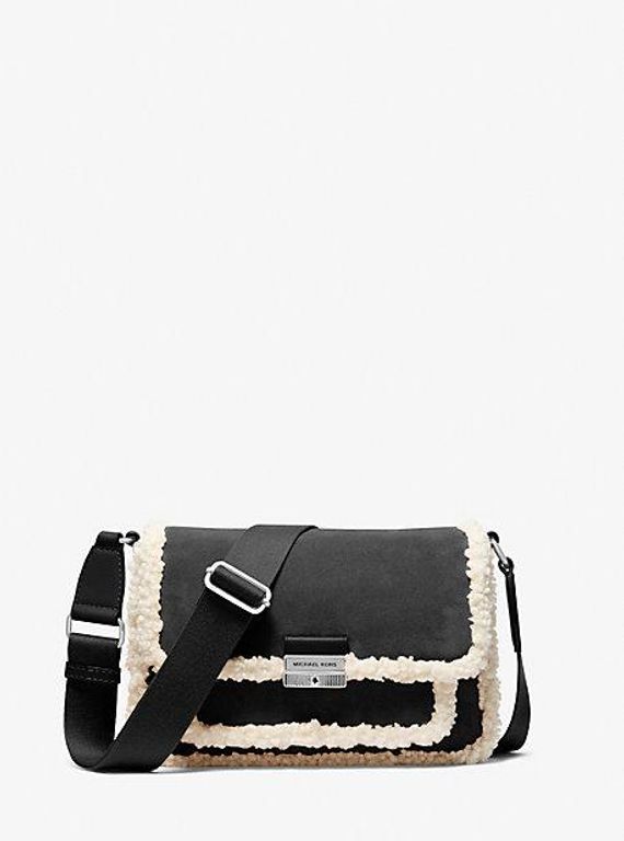 Bradshaw Medium Suede And Faux Shearling Messenger Bag - Black - Michael Kors Shoulder Bags