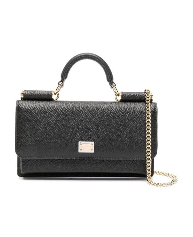 Logo Plaque Foldover Top Clutch Bag - Black - Dolce & Gabbana Clutches