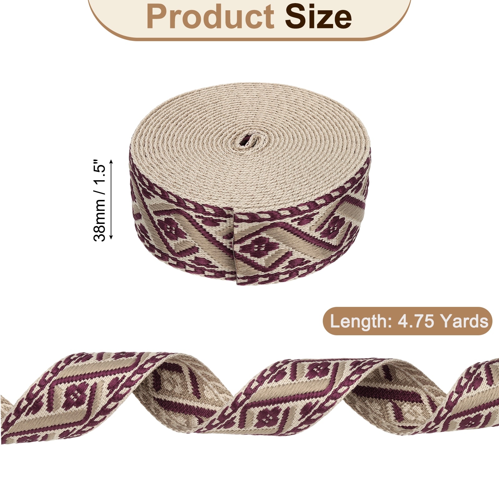 Cotton Webbing Strap, Jacquard Webbing Ribbon Embroidery Polyester Webbing Straps Purse Strap Belt - 4.75Yards x 38mm