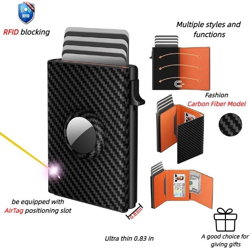 YATBEST Mens Card Bag RFID Wallet With AirTag Slot carbon Orange