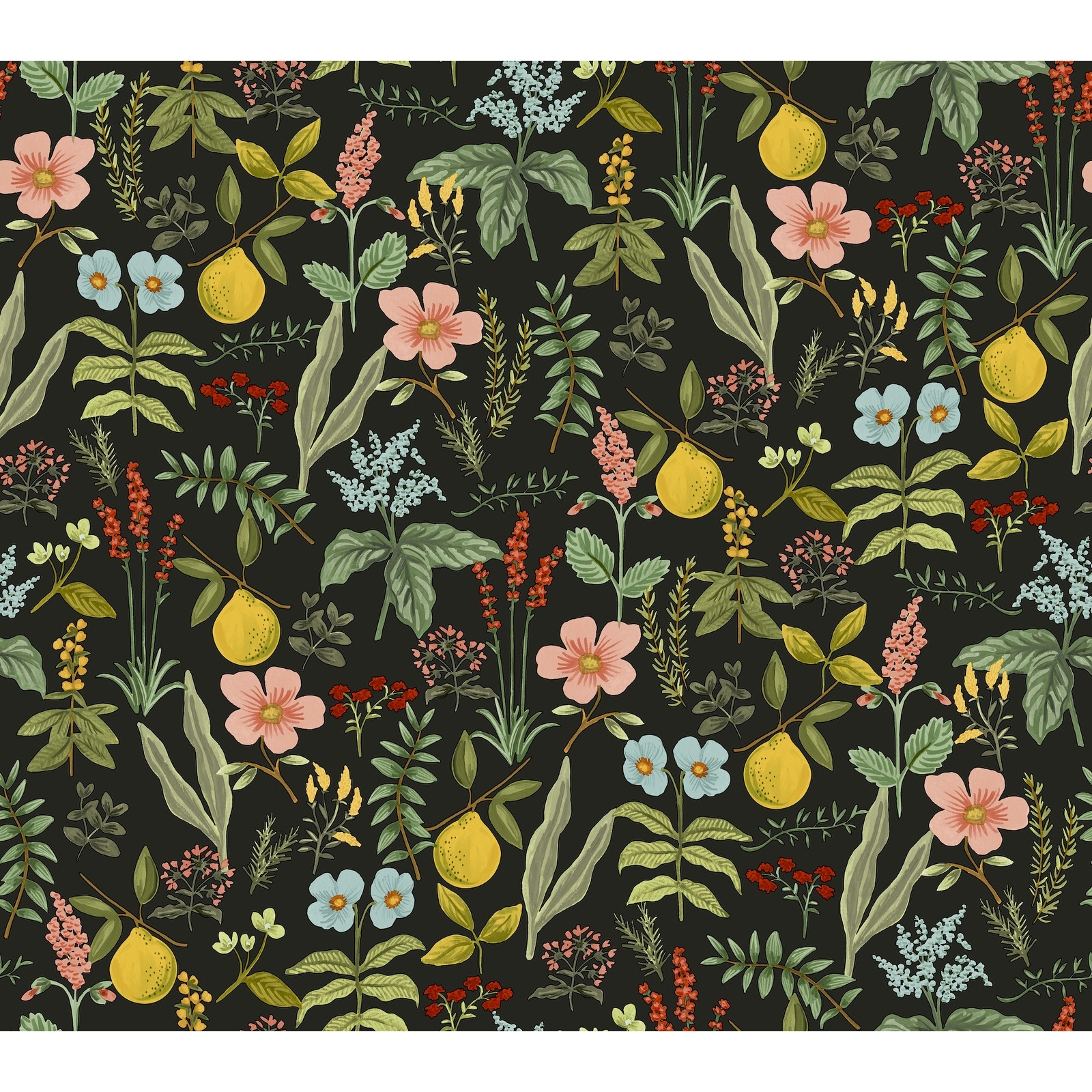 Rifle Paper Co. Herb Garden Black Botanical Premium Peel + Stick Wallpaper